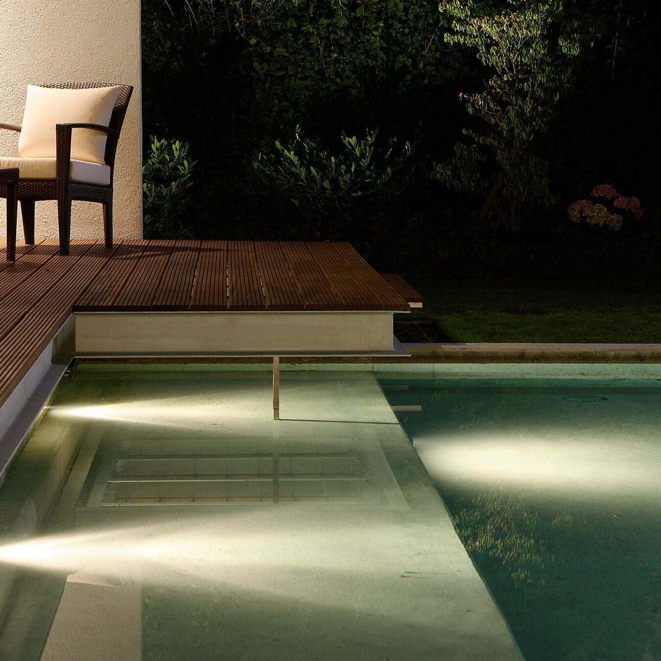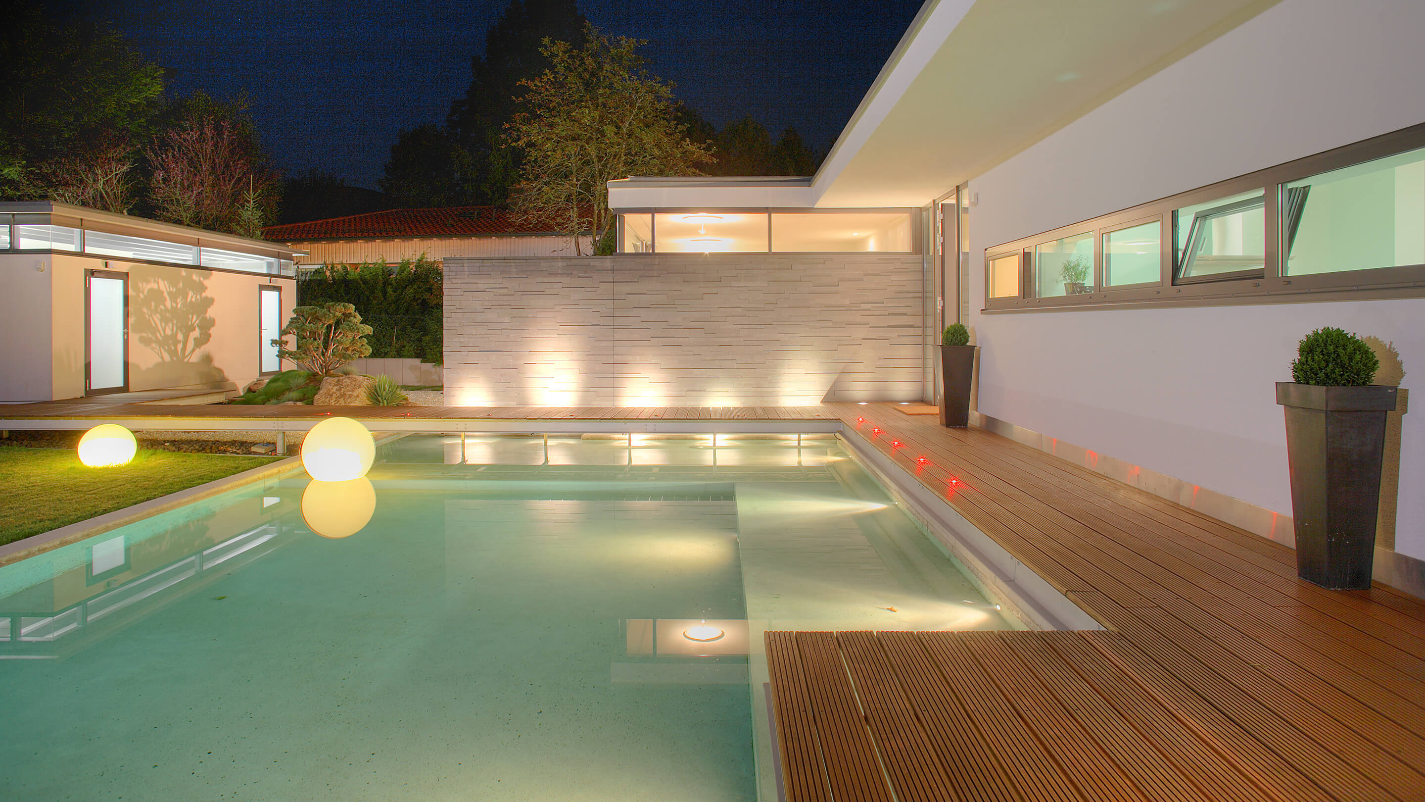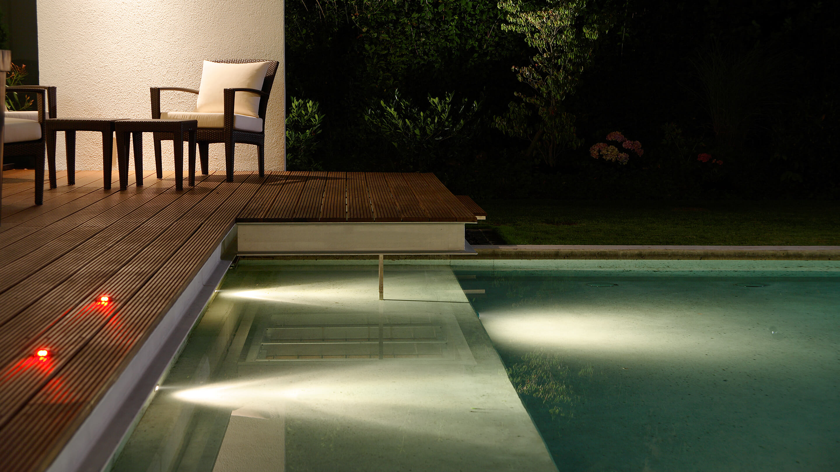 Tauchen Sie ein in fantasievolles und wundervoll farbiges Schwimmbadwasser und erleben Sie Momente einer ganz besonderen Stimmung während Sie durch das Wohlfühlwasser in Ihrem perfekten Schwimmbad gleiten. Bei Dunkelheit und Dämmerung heißt es dann "Licht aus, Spot an"
