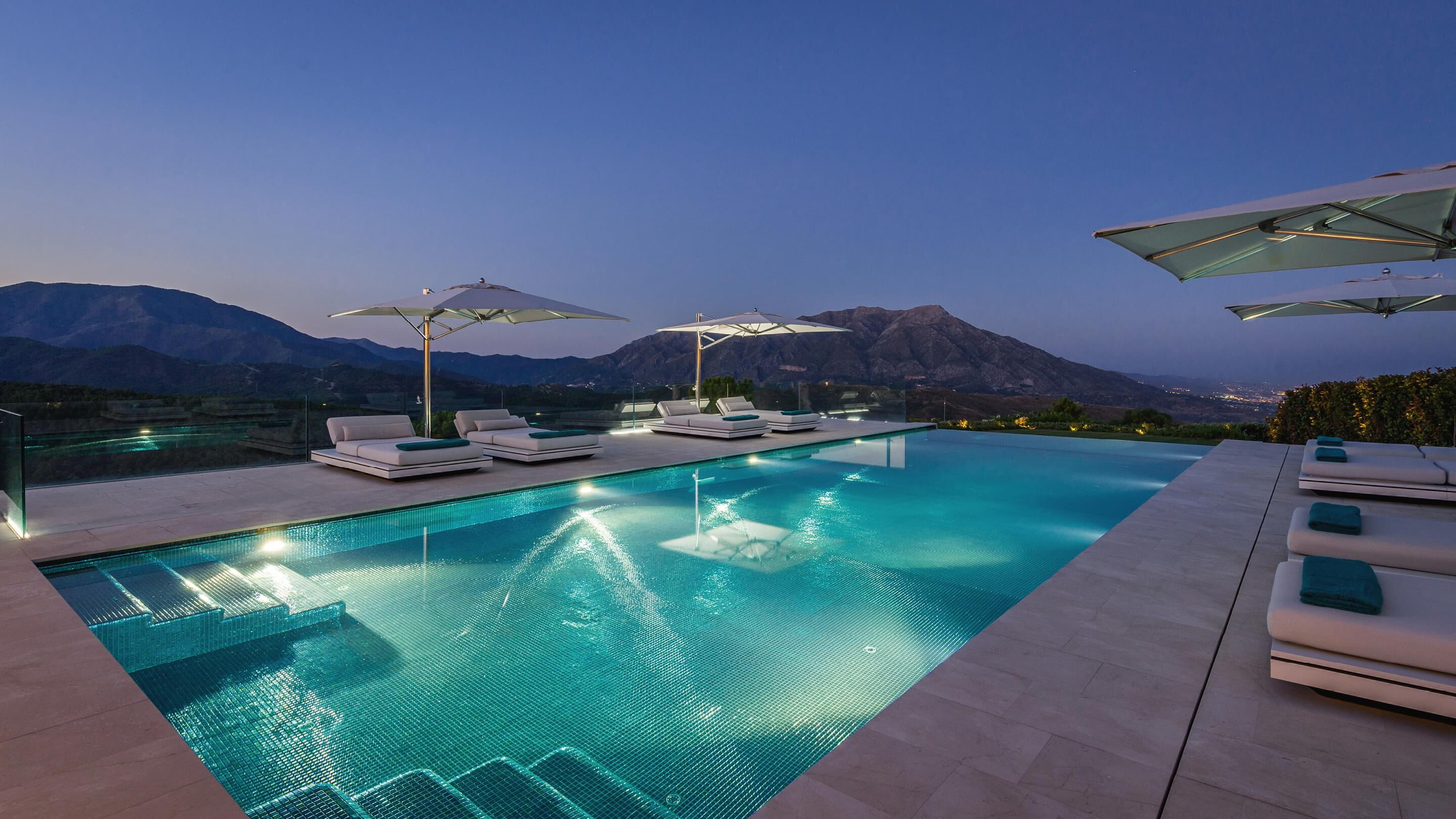 Dit buitenzwembad valt niet alleen op door het fantastische uitzicht, maar vooral ook 's avonds, wanneer de geïntegreerde ledverlichting het bassin in een heel bijzonder licht laat schitteren. Niet voor niets werd dit zwembad bekroond als 'Best pool by night'.