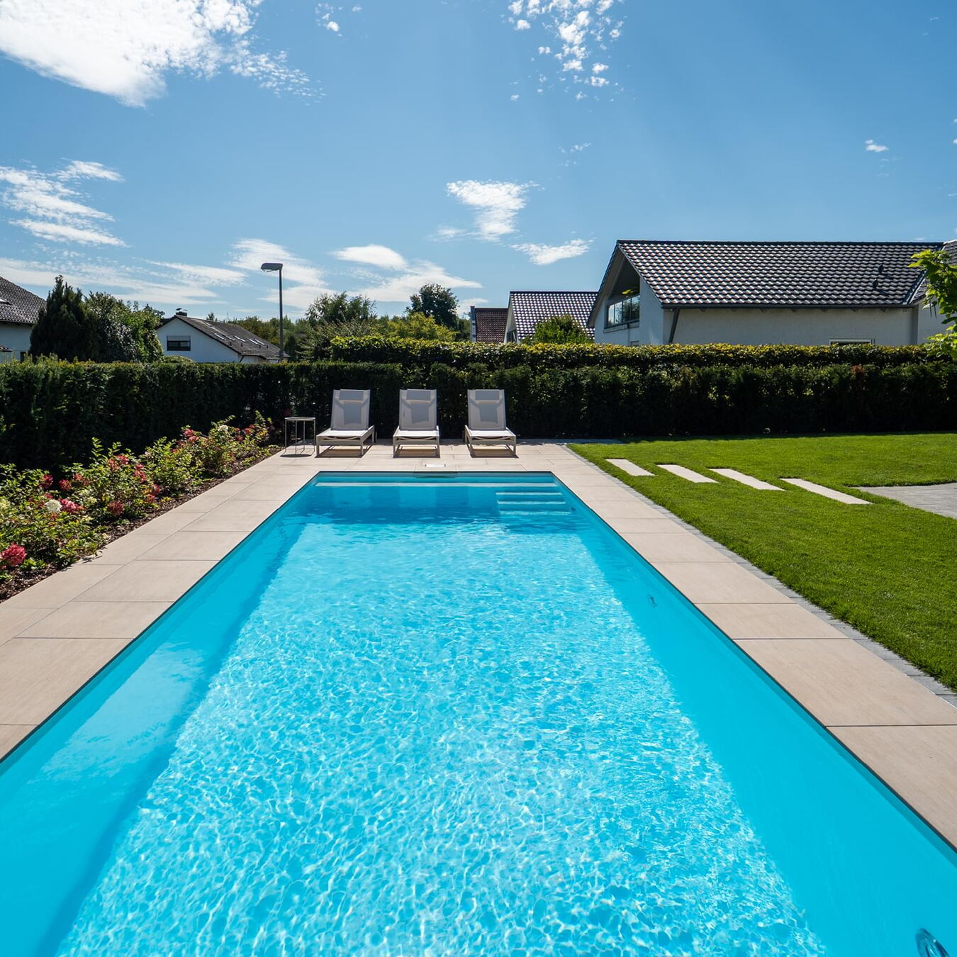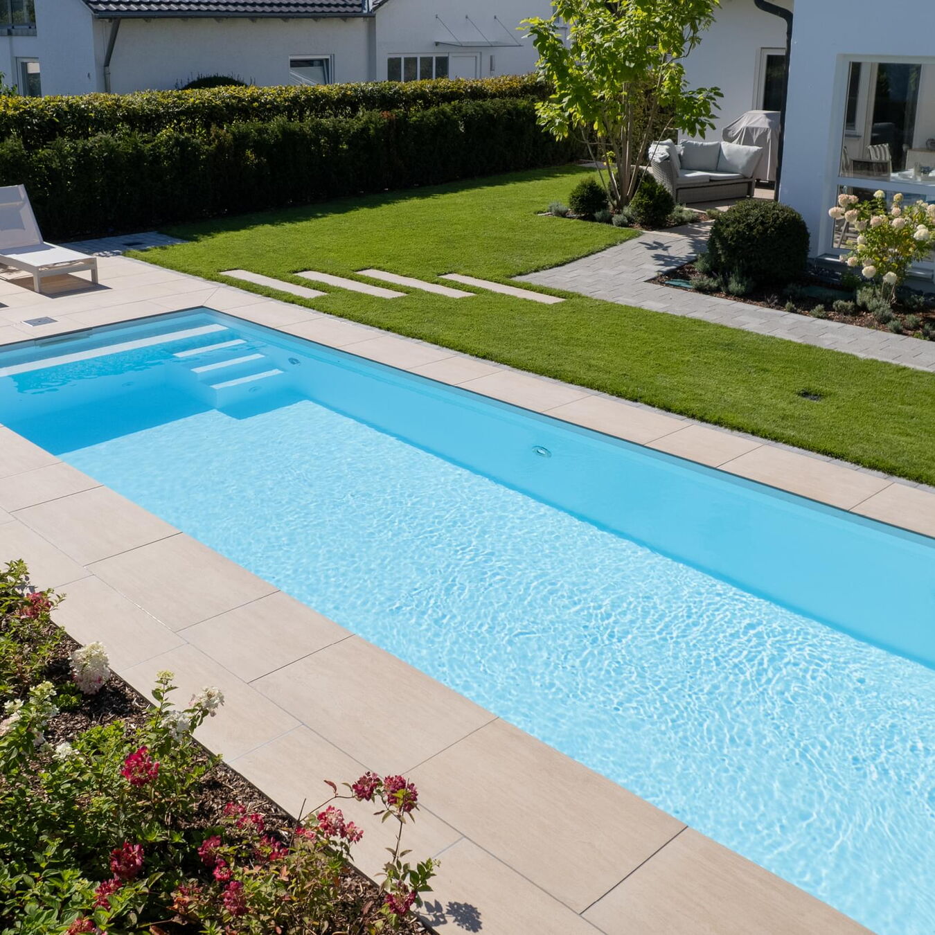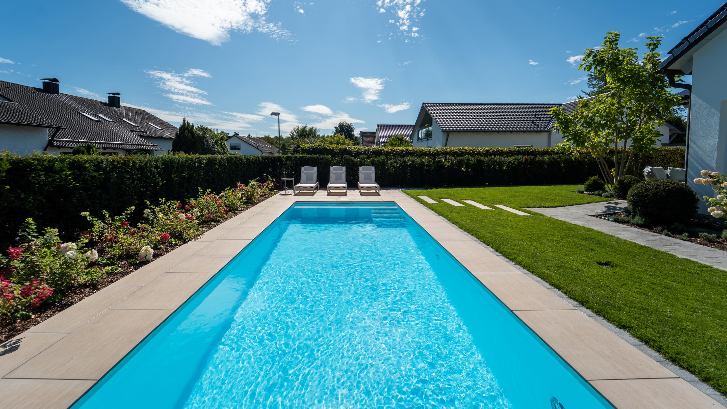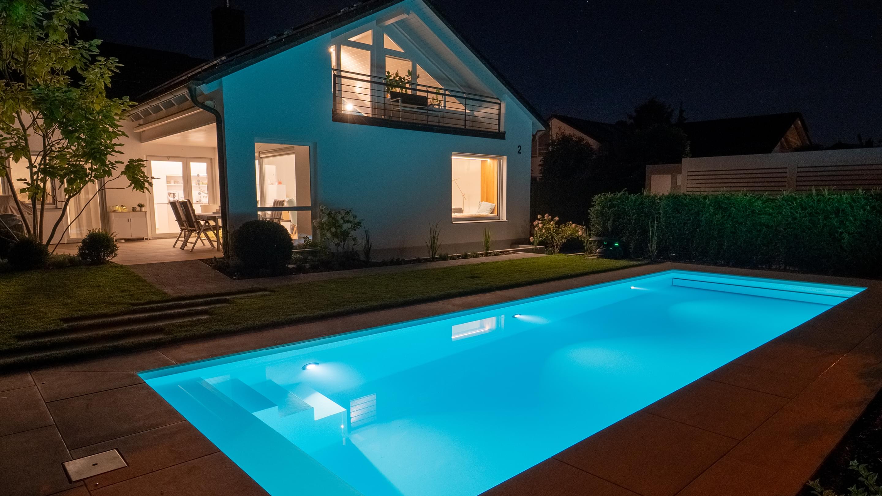 Tauchen Sie ein in fantasievolles und wundervoll farbiges Schwimmbadwasser und erleben Sie Momente einer ganz besonderen Stimmung während Sie durch das Wohlfühlwasser in Ihrem perfekten Schwimmbad gleiten. Bei Dunkelheit und Dämmerung heißt es dann "Licht aus, Spot an"