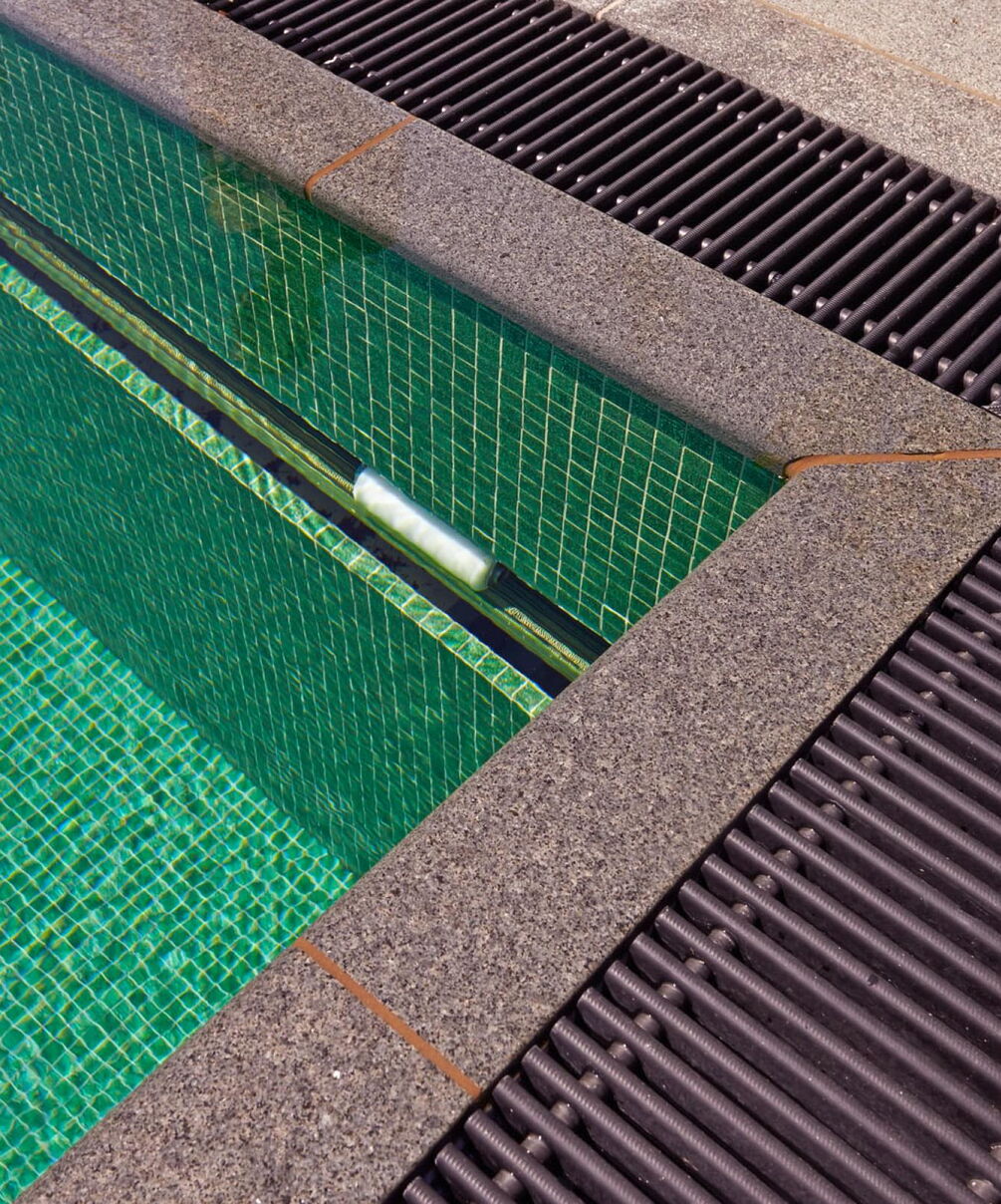 Eine Besonderheit der Anlage ist die Überlaufrinne: Sie ist so gestaltet, dass das Wasser besonders geräuscharm abfließen kann. Ebenfalls in der Champions League spielt die leistungsstarke Ospa Wasseraufbereitung mit EcoClean Super 10-Filteranlage und Ospa-BlueClear®. Im Doppelpass halten die beiden das Poolwasser stets glasklar, quellfrisch und haut- und augenfreundlich, sodass auch ausgedehnte Trainingseinheiten nicht zu Tränen rühren.