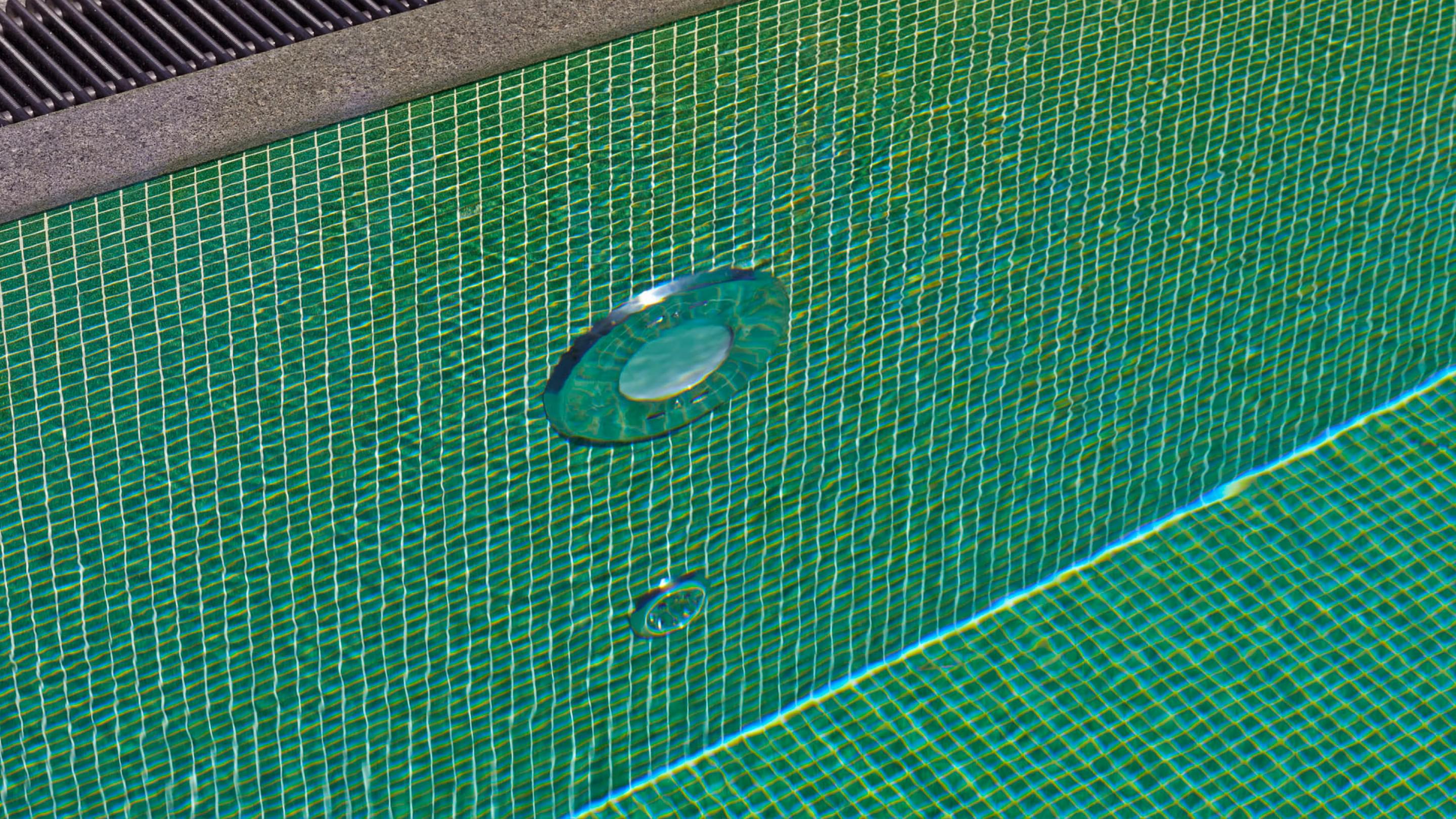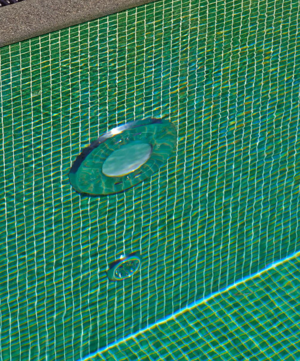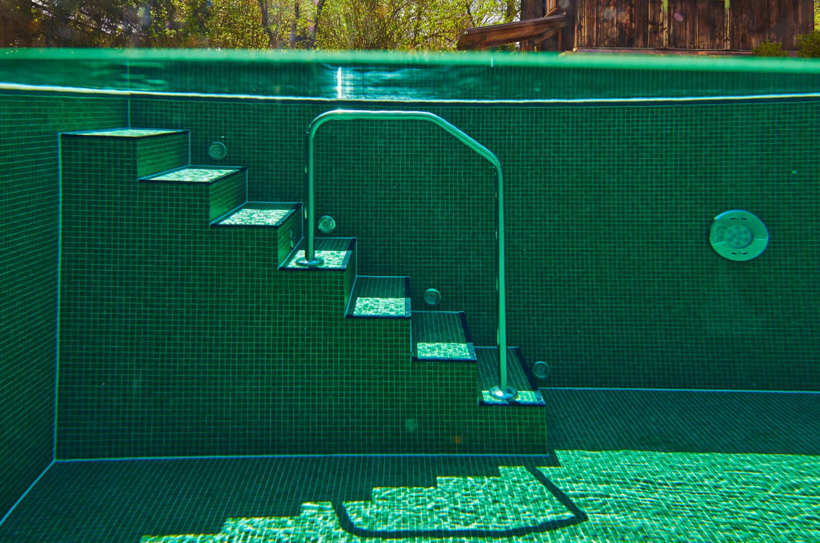 War es die Liebe zum grünen Rasen, die den Bauherrn, einen ehemaligen Fußballprofi, dazu bewog, seinen Pool ganz in Grün zu gestalten?