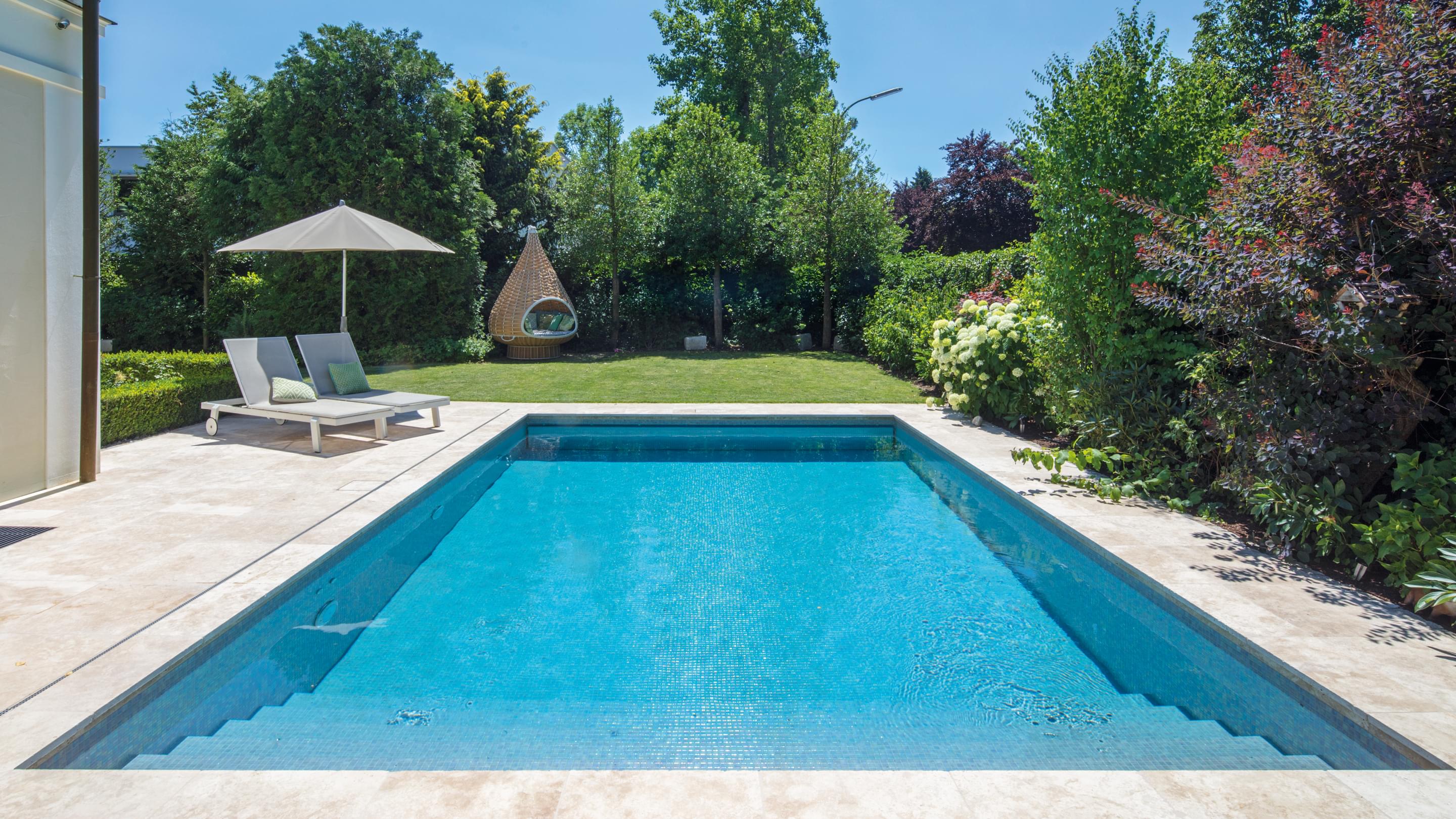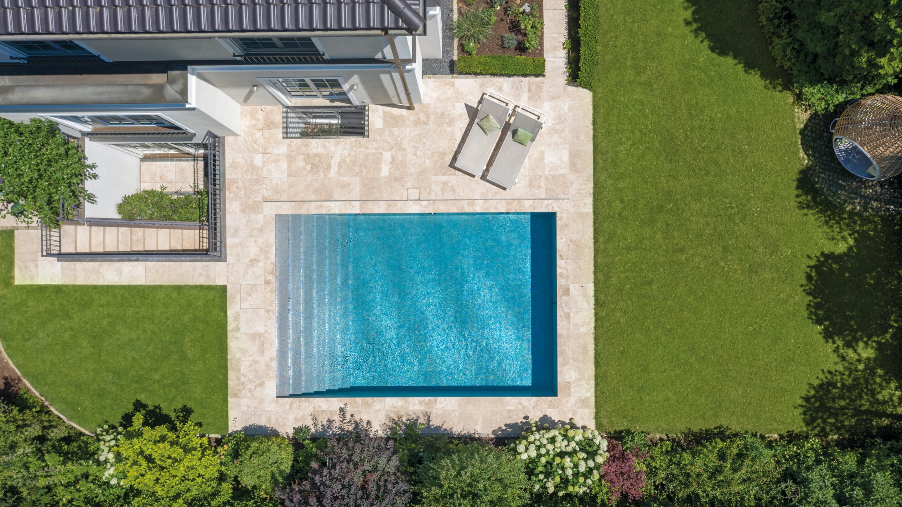 Für die Kinder dieser Bauherren aus Grünwald bei München gab es einen großen Herzenswunsch: das eigene Spaßbad im Garten. Gemeinsam entschied sich die Familie für einen Pool nach Maß mit feinen Mosaiksteinchen, bei dem jedes Detail zu hundert Prozent den individuellen Vorstellungen der Bauherren gerecht wird. Wichtig hierbei: Schwimmbadtechnik der Spitzenklasse für kristallklares und maximal natürliches Wohlfühlwasser.