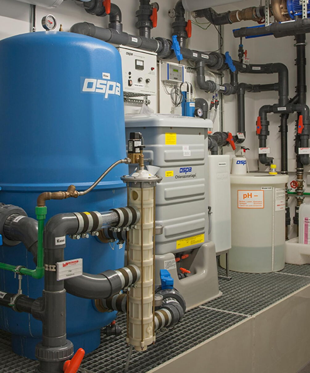 Die Gegenstromanlage ermöglicht sportliche Aktivitäten direkt neben den eigenen vier Wänden. Die Kontrolle der Schwimmbadtechnik erfolgt ganz modern per Touchscreen mit der Ospa-BlueControl®. Die bewährte Kombination aus Ospa-Filter und Ospa-BlueClear® sorgt für quellfrisches und geruchloses Schwimmbadwasser.