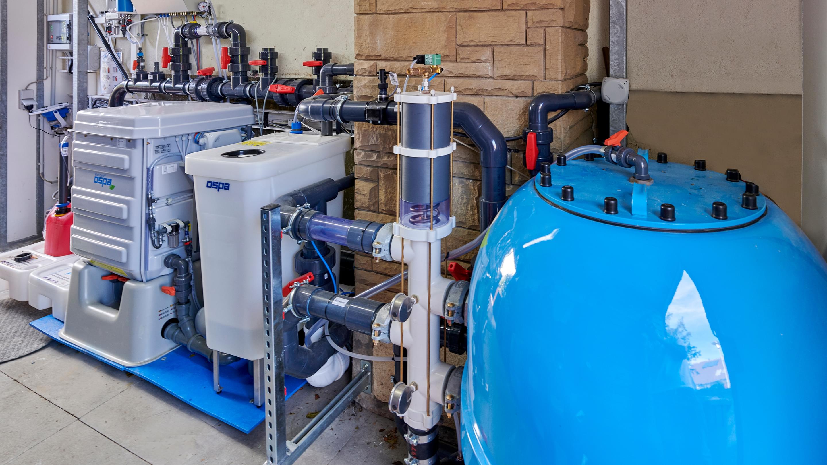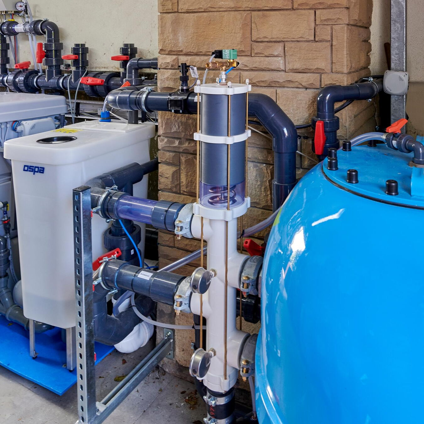 Das Folienbecken mit Flachwasserbereich hat eine Länge von 14 Meter. Der Schwimmbereich misst 8,50 x 4,40 Metern und hat eine Wassertiefe von 1,35 bis 1,50 Meter. Das umgebaute Becken, ausgestattet mit der neuesten Ospa-Wasseraufbereitungstechnik, bietet jetzt optimale Wasserqualität und ist äußerst pflegeleicht. Die Web-App "Ospa-BlueCheck" ermöglicht die Fernbedienung und Überwachung der Anlage. Die Photovoltaikanlage sorgt für Energieeffizienz, indem sie die moderne Schwimmbadheizung aus Ospa-Plattenwärmetauschern und die Filterpumpe mit Solarstrom versorgt.