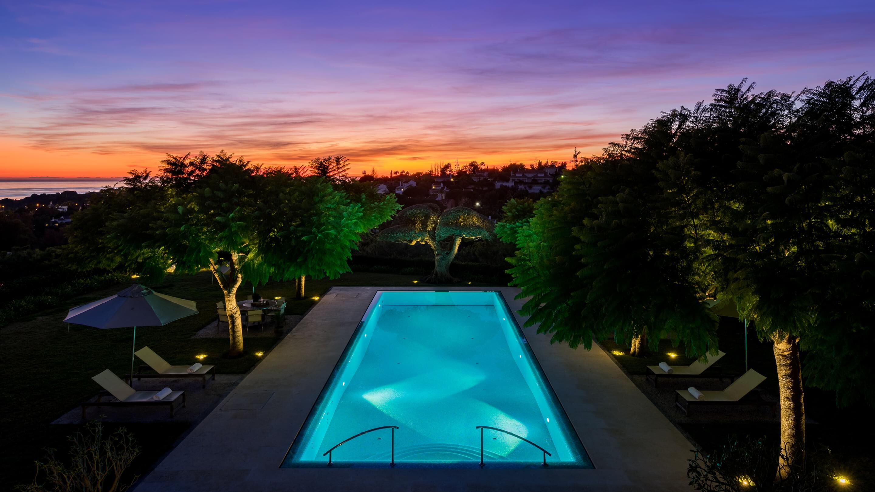 Tauchen Sie ein in fantasievolles und wundervoll farbiges Schwimmbadwasser und erleben Sie Momente einer ganz besonderen Stimmung während Sie durch das Wohlfühlwasser in Ihrem perfekten Schwimmbad gleiten. Bei Dunkelheit und Dämmerung heißt es dann "Licht aus, Spot an"