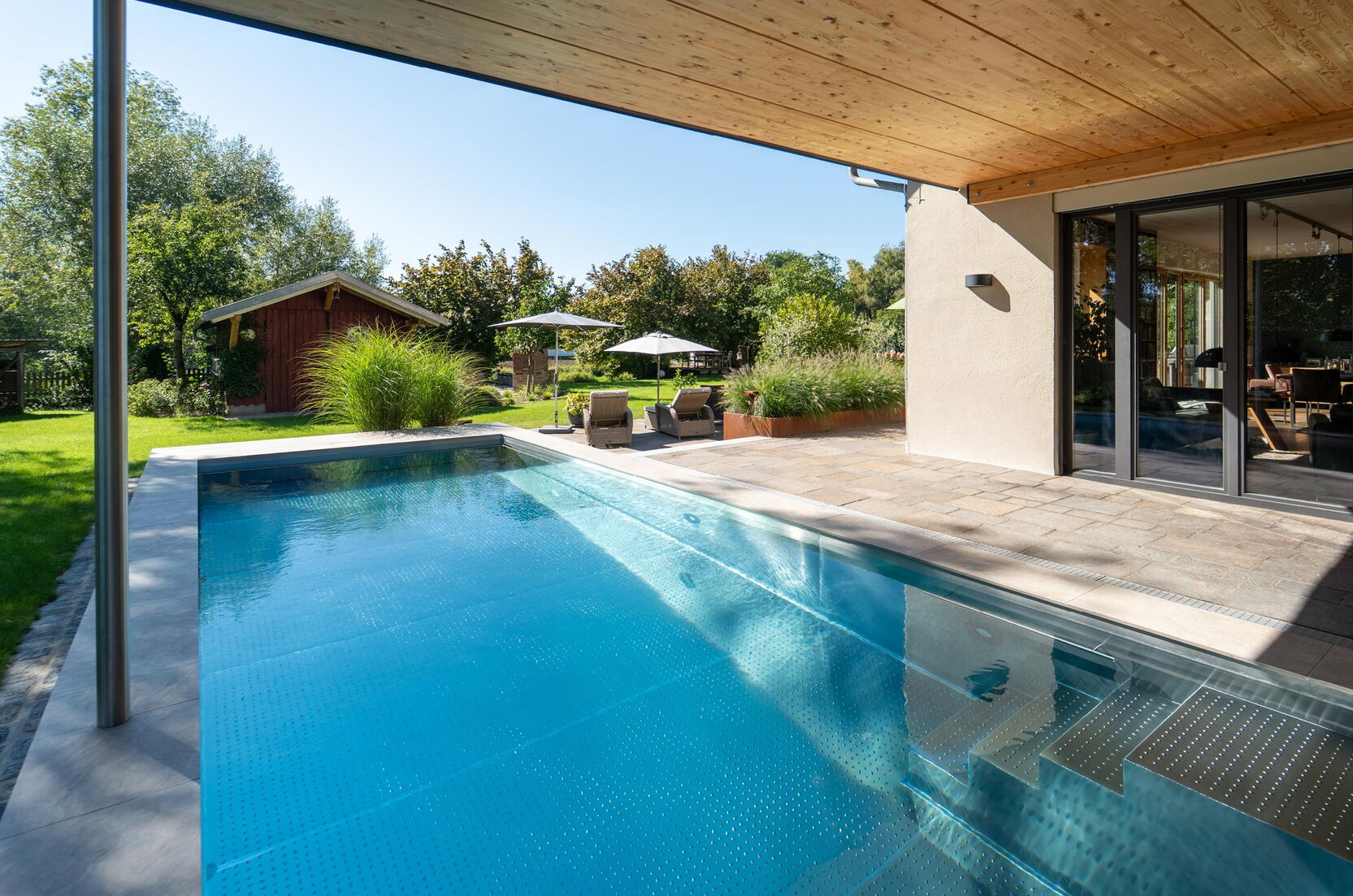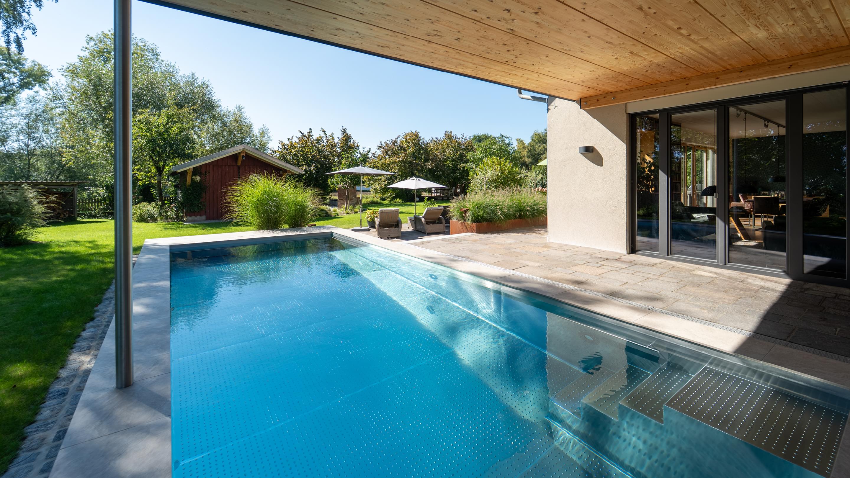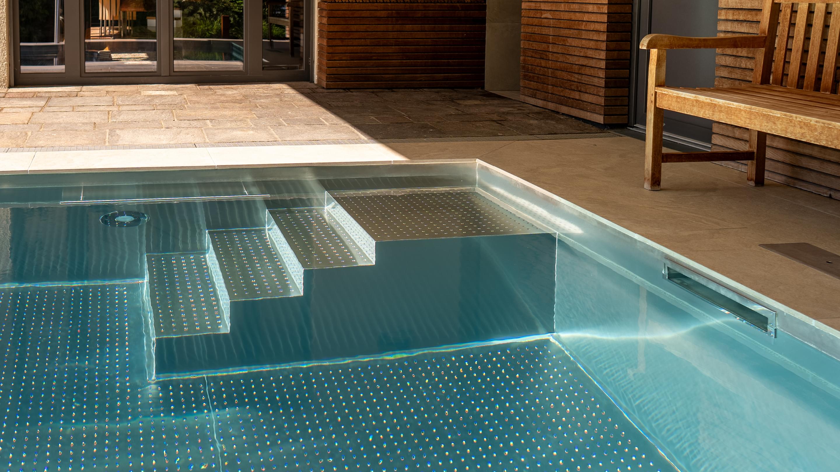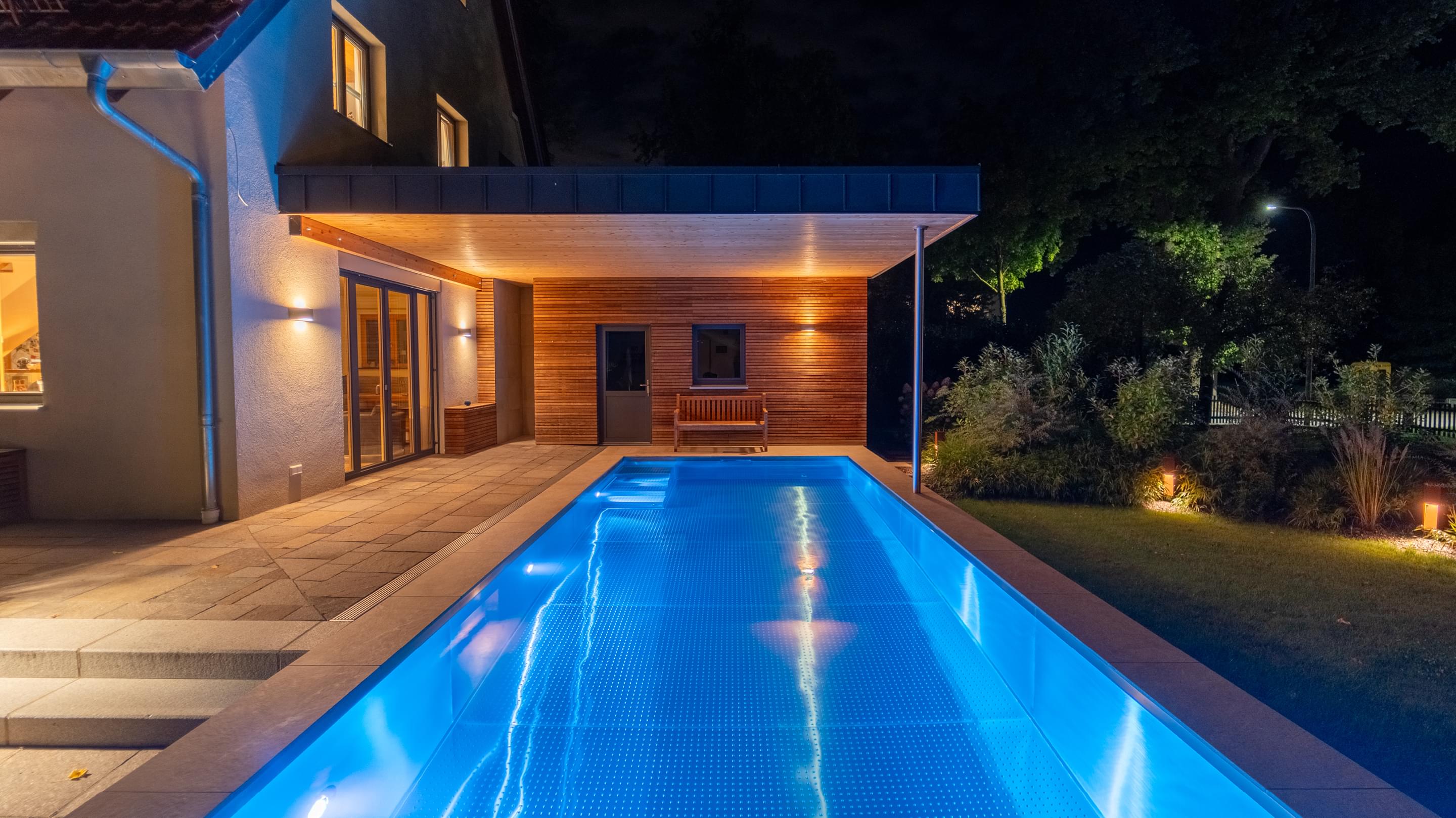 Tauchen Sie ein in fantasievolles und wundervoll farbiges Schwimmbadwasser und erleben Sie Momente einer ganz besonderen Stimmung während Sie durch das Wohlfühlwasser in Ihrem perfekten Schwimmbad gleiten. Bei Dunkelheit und Dämmerung heißt es dann "Licht aus, Spot an"