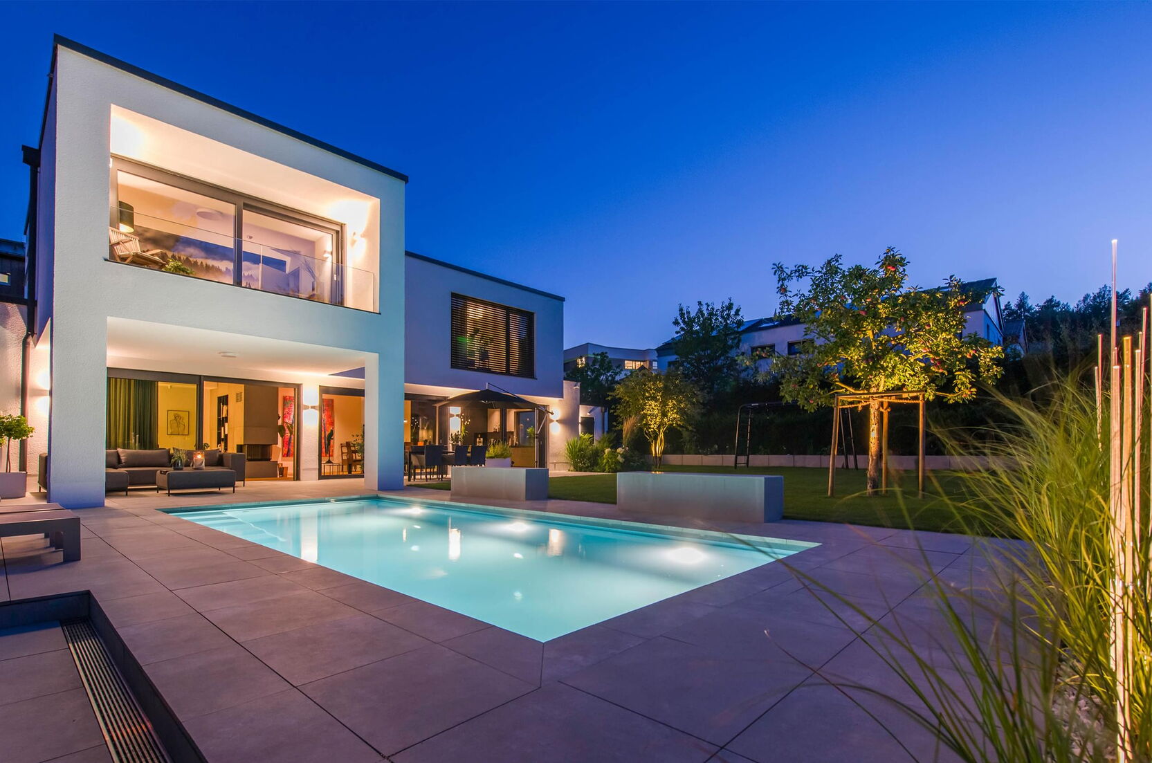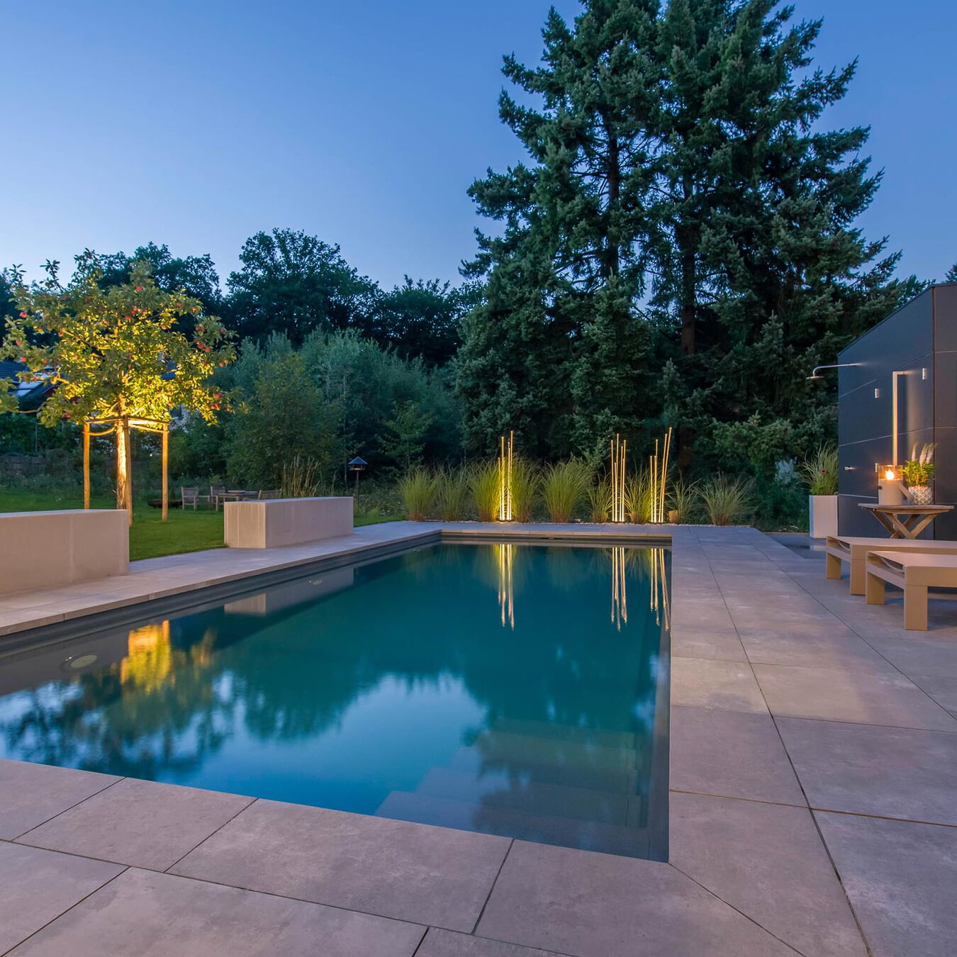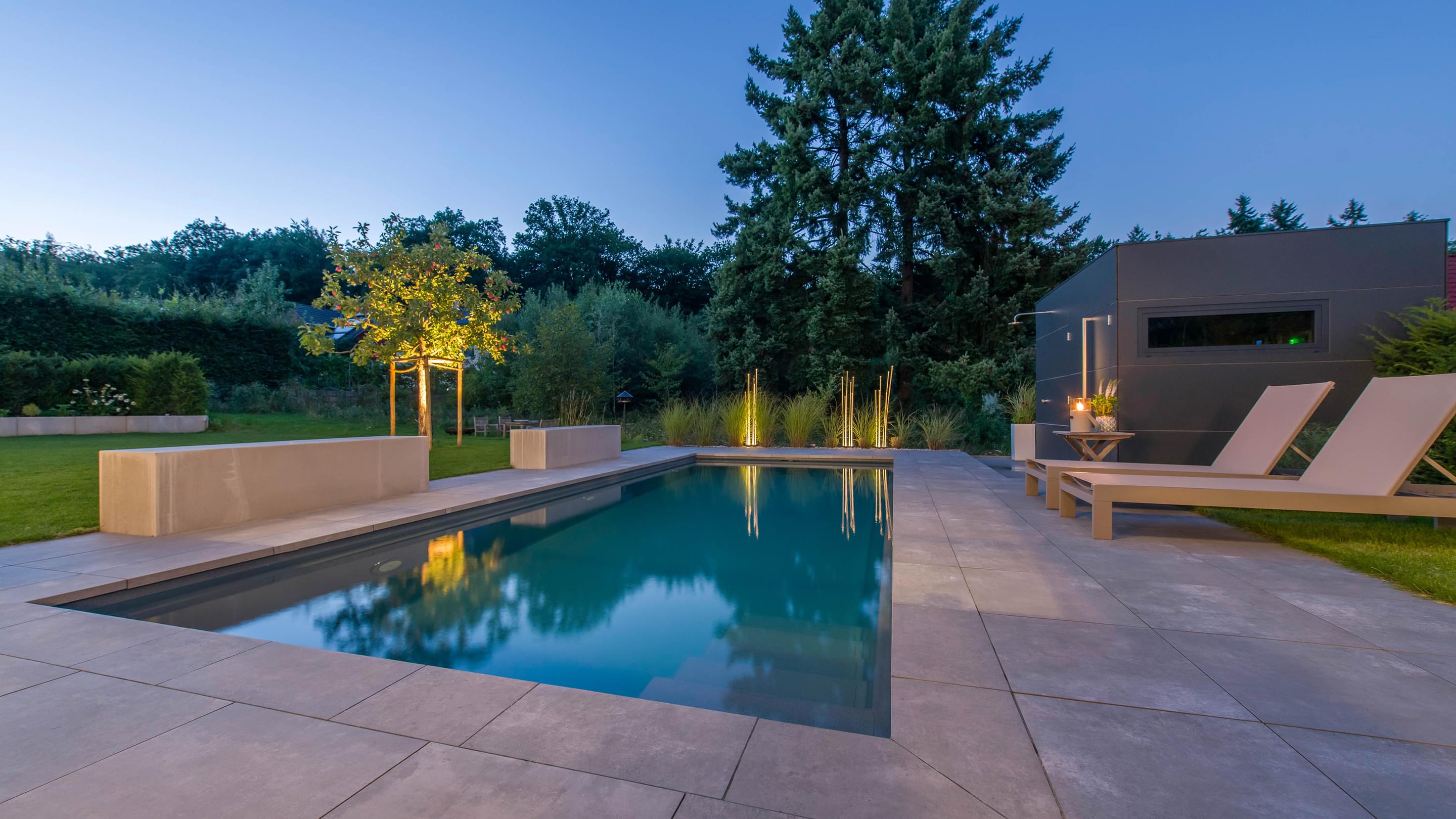 Tauchen Sie ein in fantasievolles und wundervoll farbiges Schwimmbadwasser und erleben Sie Momente einer ganz besonderen Stimmung während Sie durch das Wohlfühlwasser in Ihrem perfekten Schwimmbad gleiten. Bei Dunkelheit und Dämmerung heißt es dann "Licht aus, Spot an"