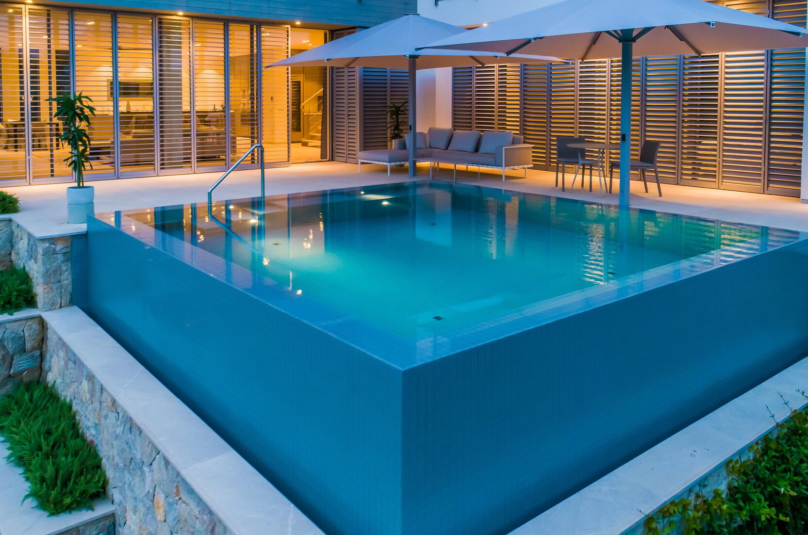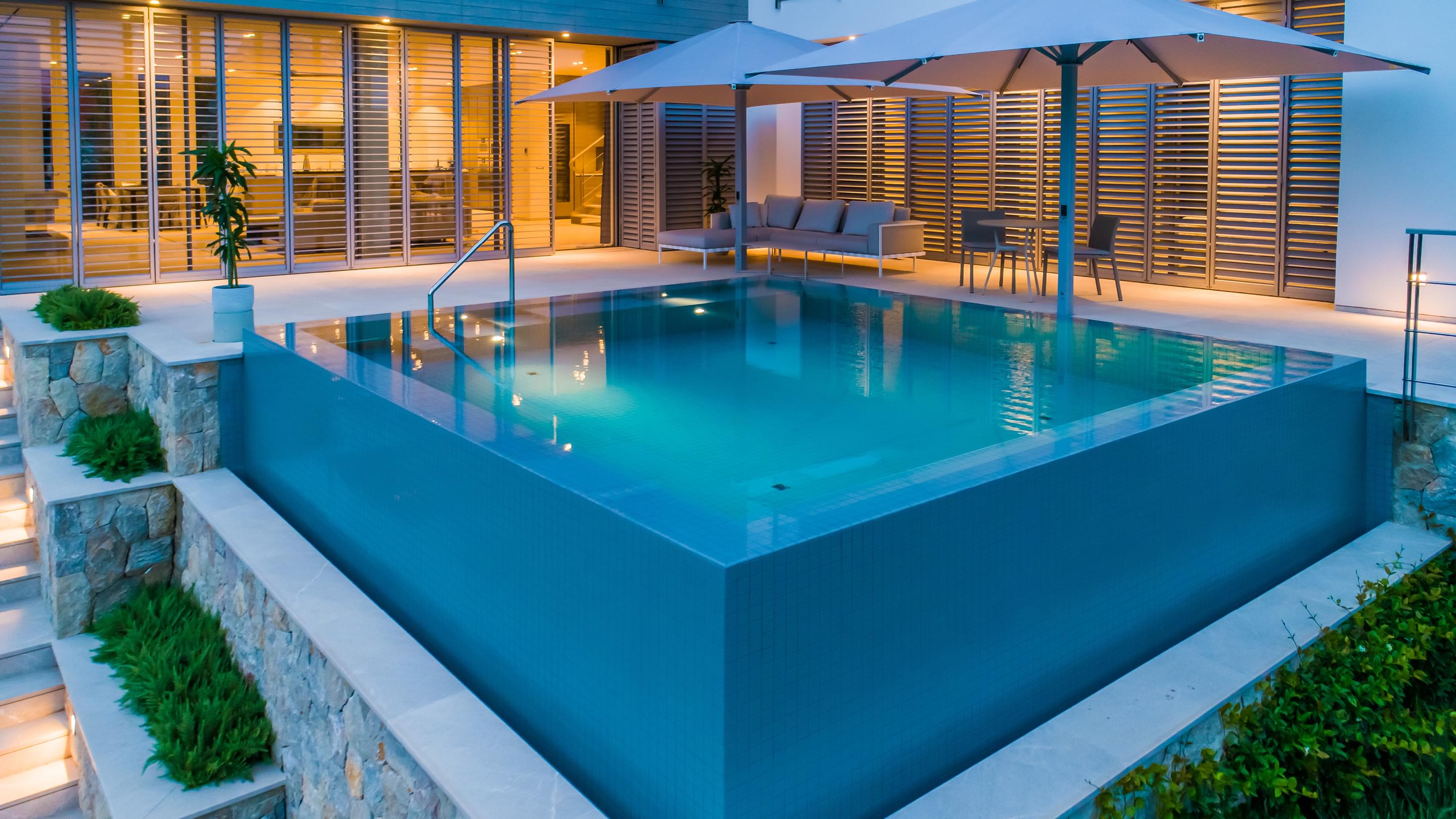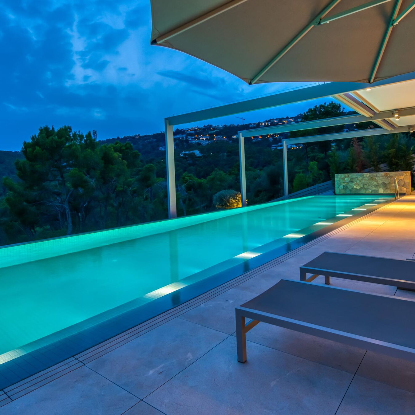 Kraftvoll rauscht das Wasser in die Tiefe. Die imposante Wirkung des Ospa-Wasserfalls lässt sich mit einer stimmungsvollen Beleuchtung weiter steigern und wird so zur exklusiven Wasserattraktion in den Abendstunden.