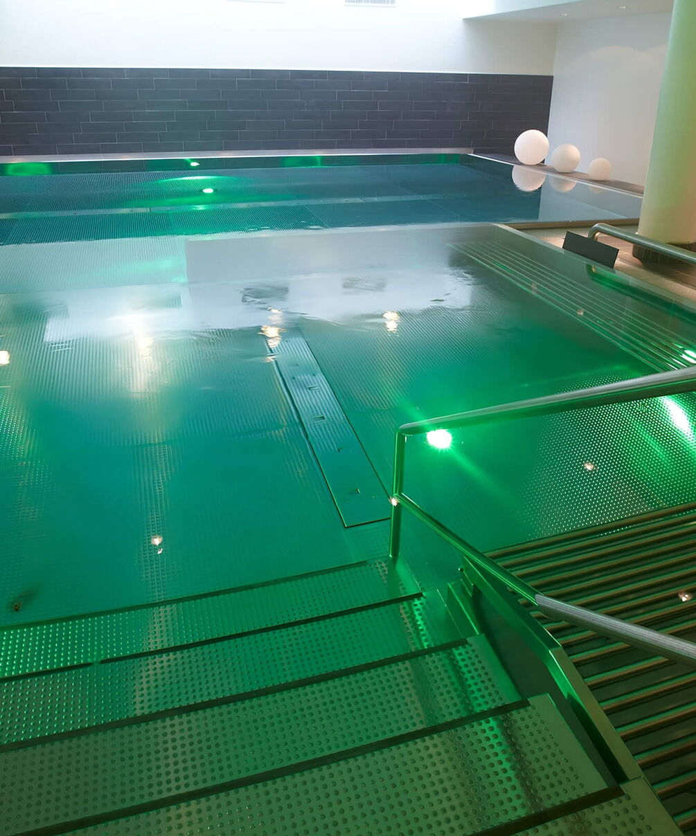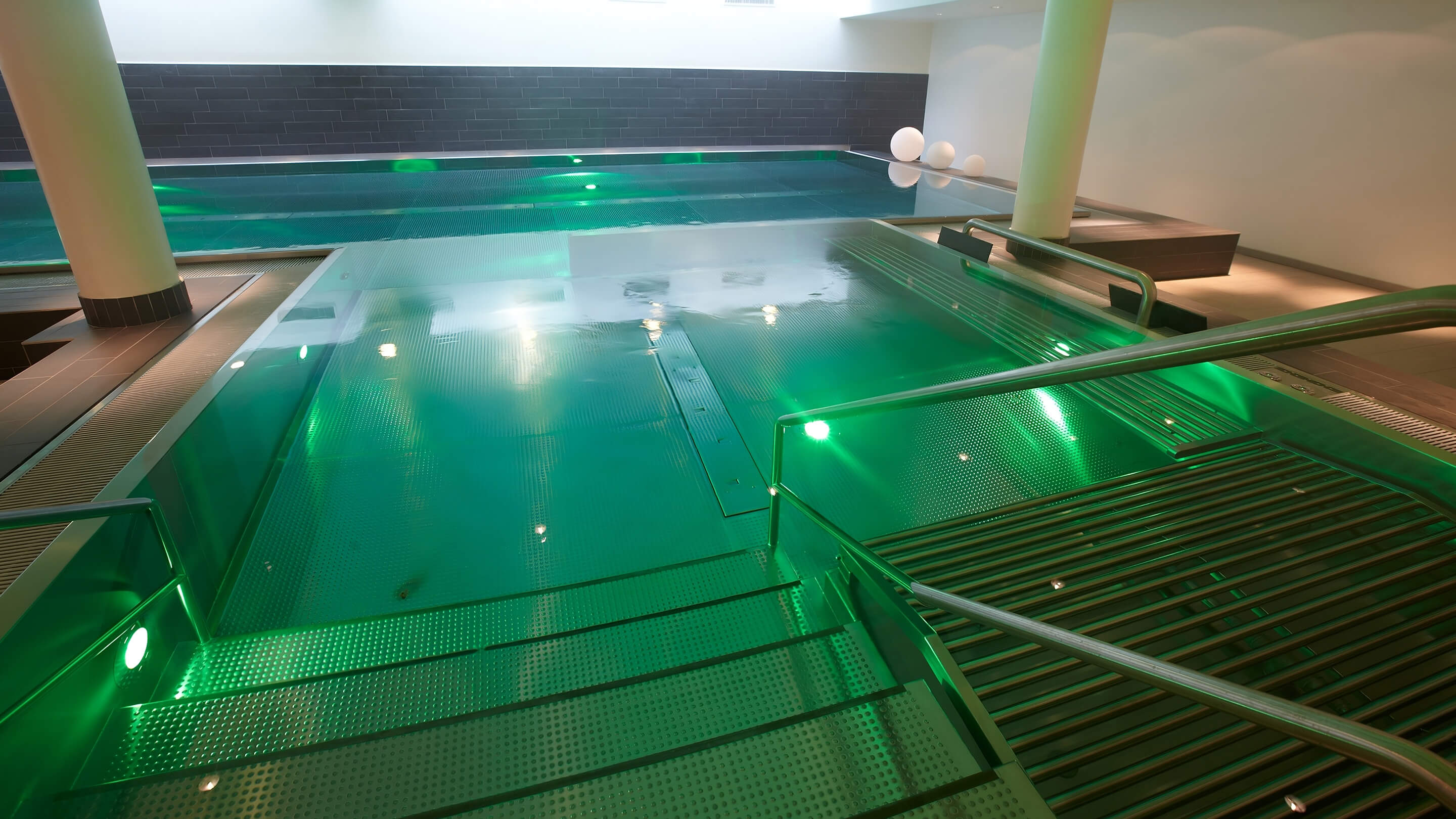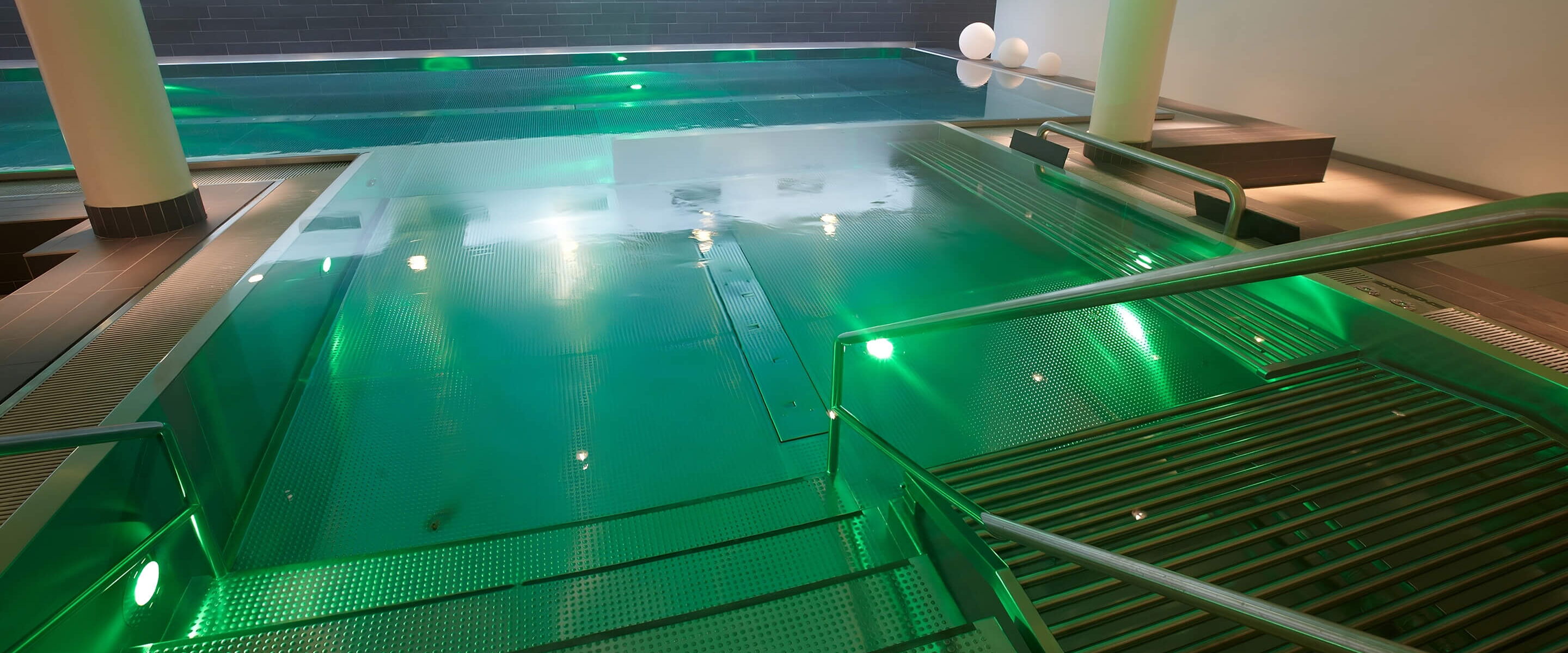 Bequem im Luftsprudel liegen und relaxen. Nach sportlichem Schwimmen lässt es sich bequem auf der Luftsprudelliege relaxen. Mehrere Anlagen mit jeweils bis zu 3 Liegen können in den Beckenkörper integriert werden.