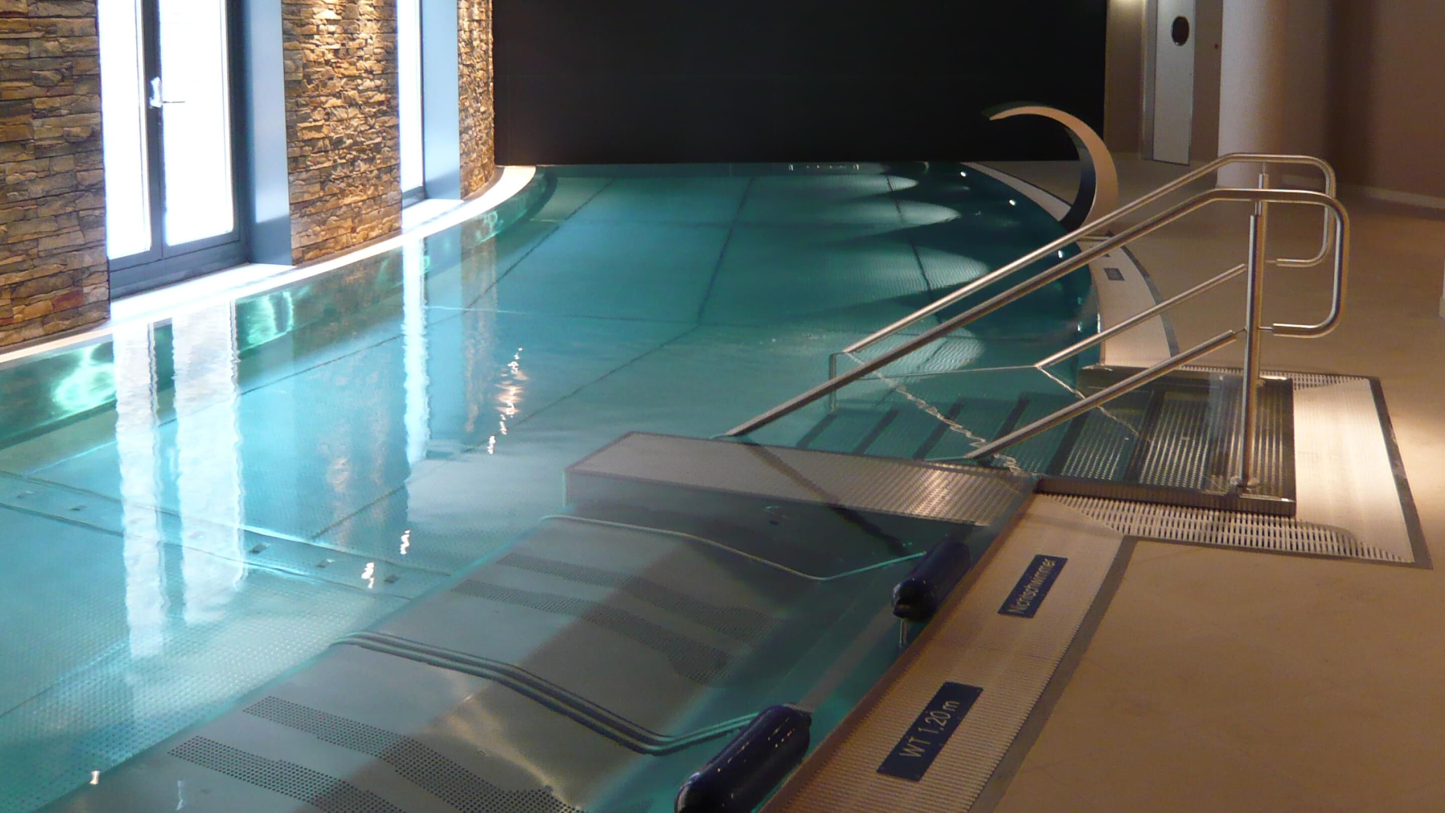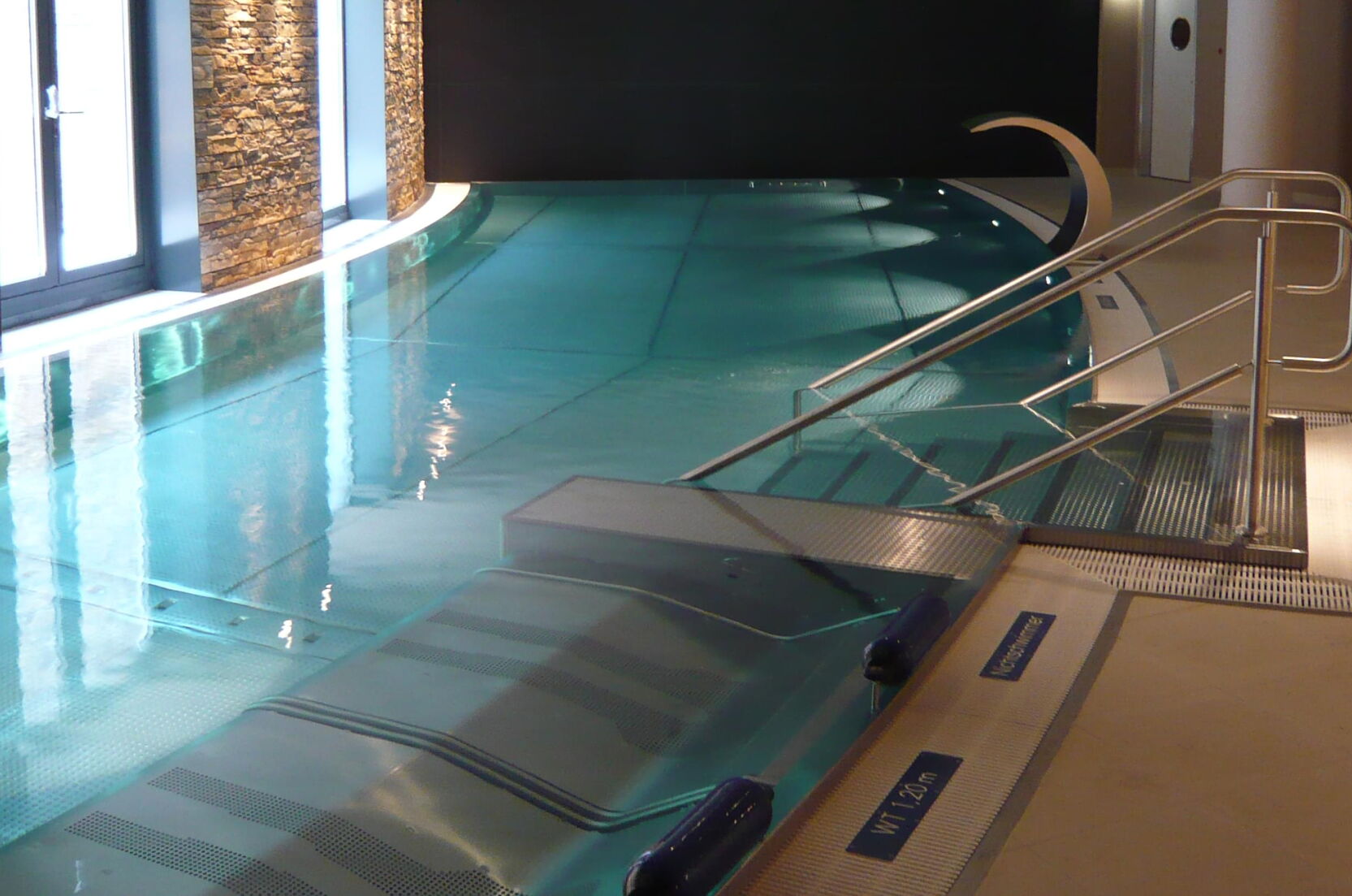 Bequem im Luftsprudel liegen und relaxen. Nach sportlichem Schwimmen lässt es sich bequem auf der Luftsprudelliege relaxen. Mehrere Anlagen mit jeweils bis zu 3 Liegen können in den Beckenkörper integriert werden.