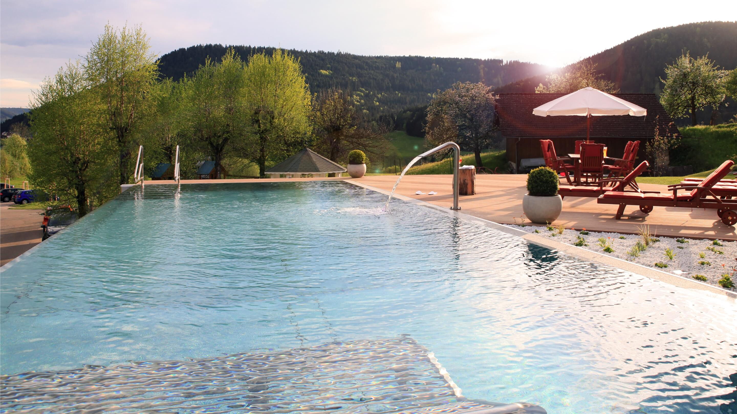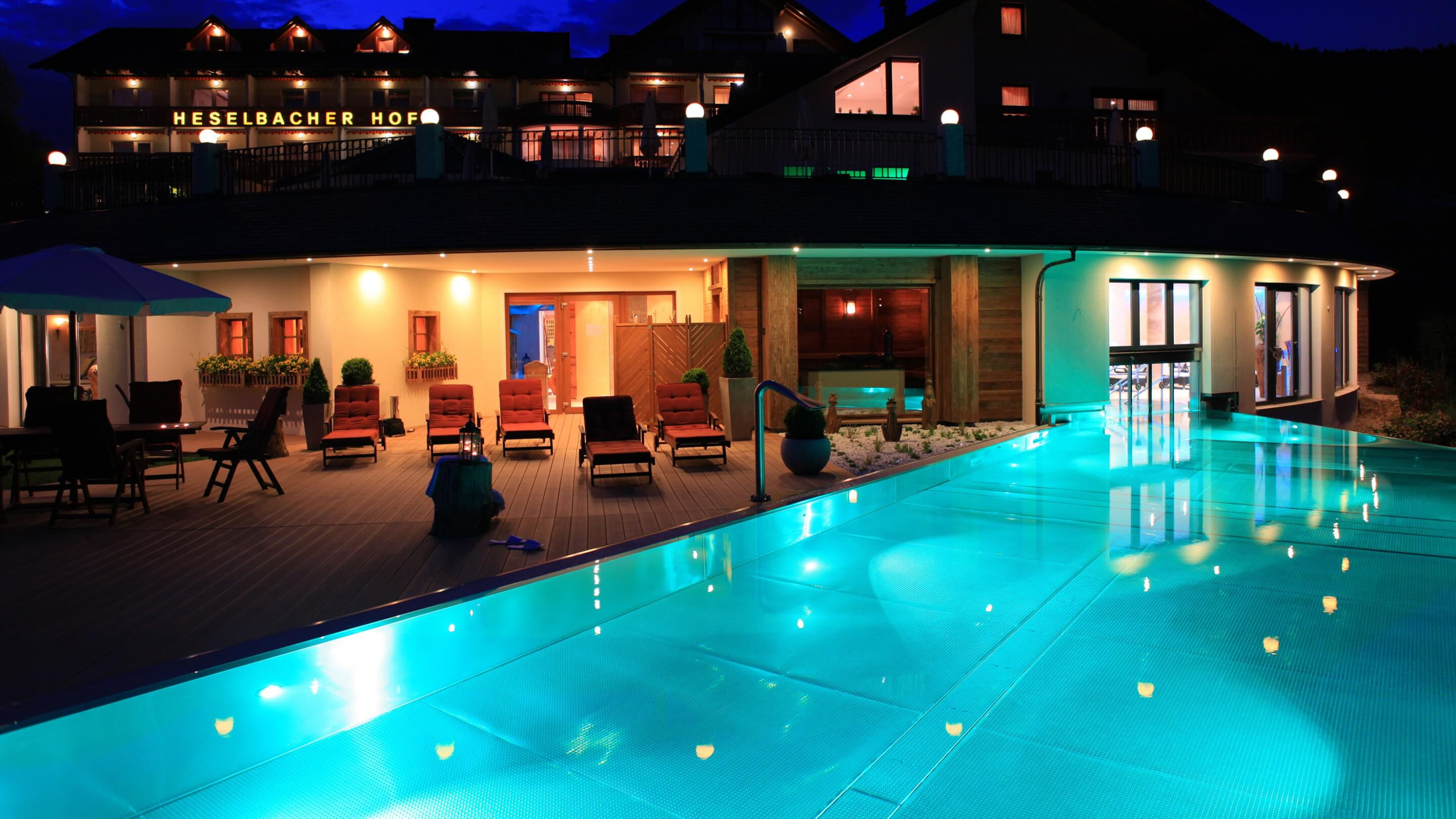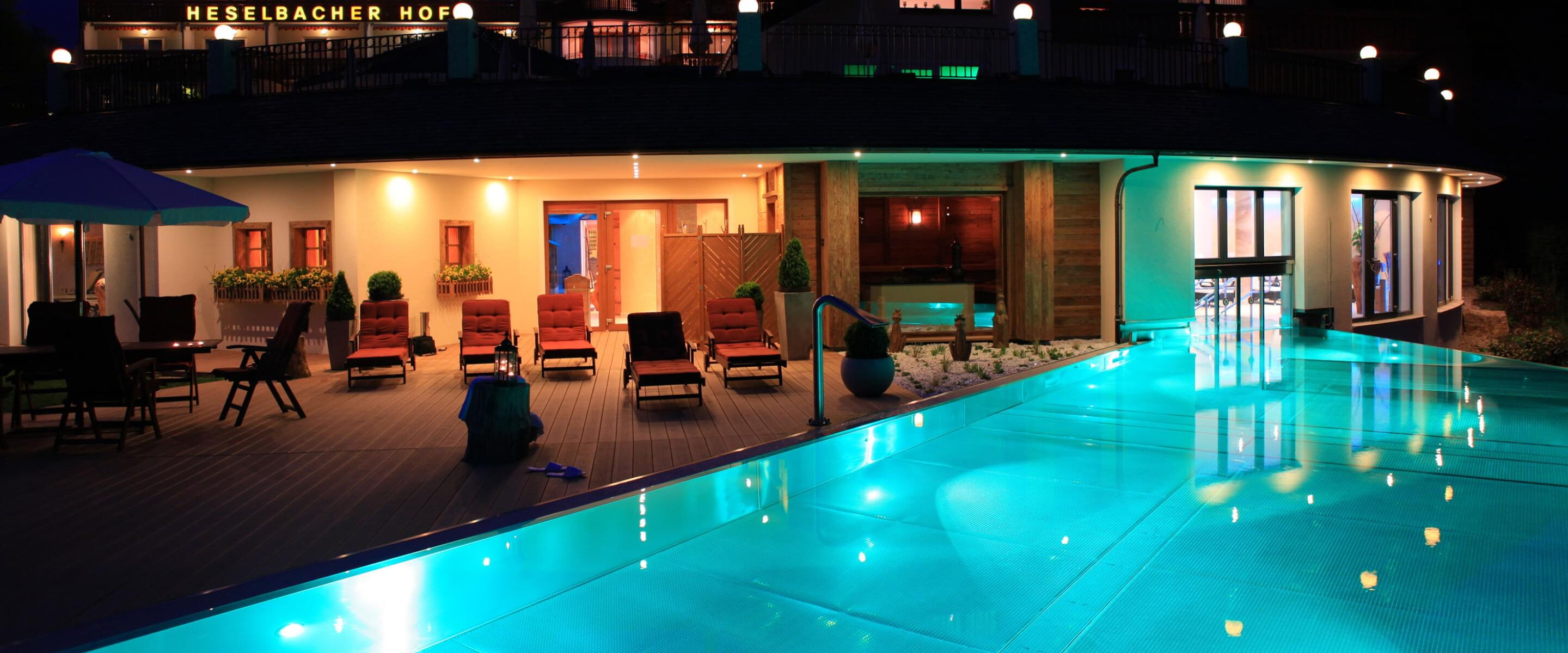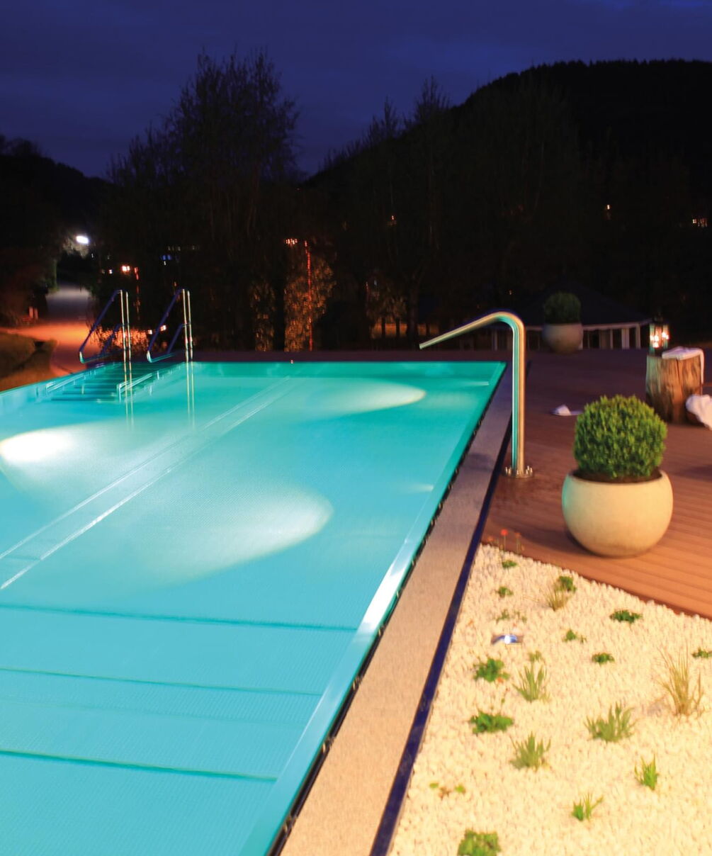 Tauchen Sie ein in fantasievolles und wundervoll farbiges Schwimmbadwasser und erleben Sie Momente einer ganz besonderen Stimmung während Sie durch das Wohlfühlwasser in Ihrem perfekten Schwimmbad gleiten. Bei Dunkelheit und Dämmerung heißt es dann "Licht aus, Spot an"