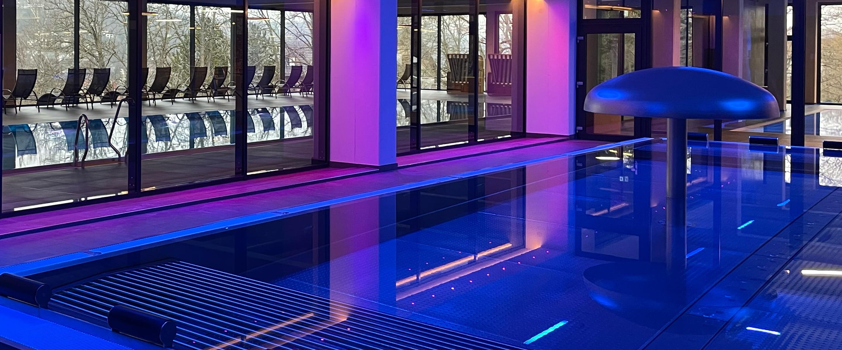 Tauchen Sie ein in fantasievolles und wundervoll farbiges Schwimmbadwasser und erleben Sie Momente einer ganz besonderen Stimmung während Sie durch das Wohlfühlwasser in Ihrem perfekten Schwimmbad gleiten. Bei Dunkelheit und Dämmerung heißt es dann "Licht aus, Spot an"
