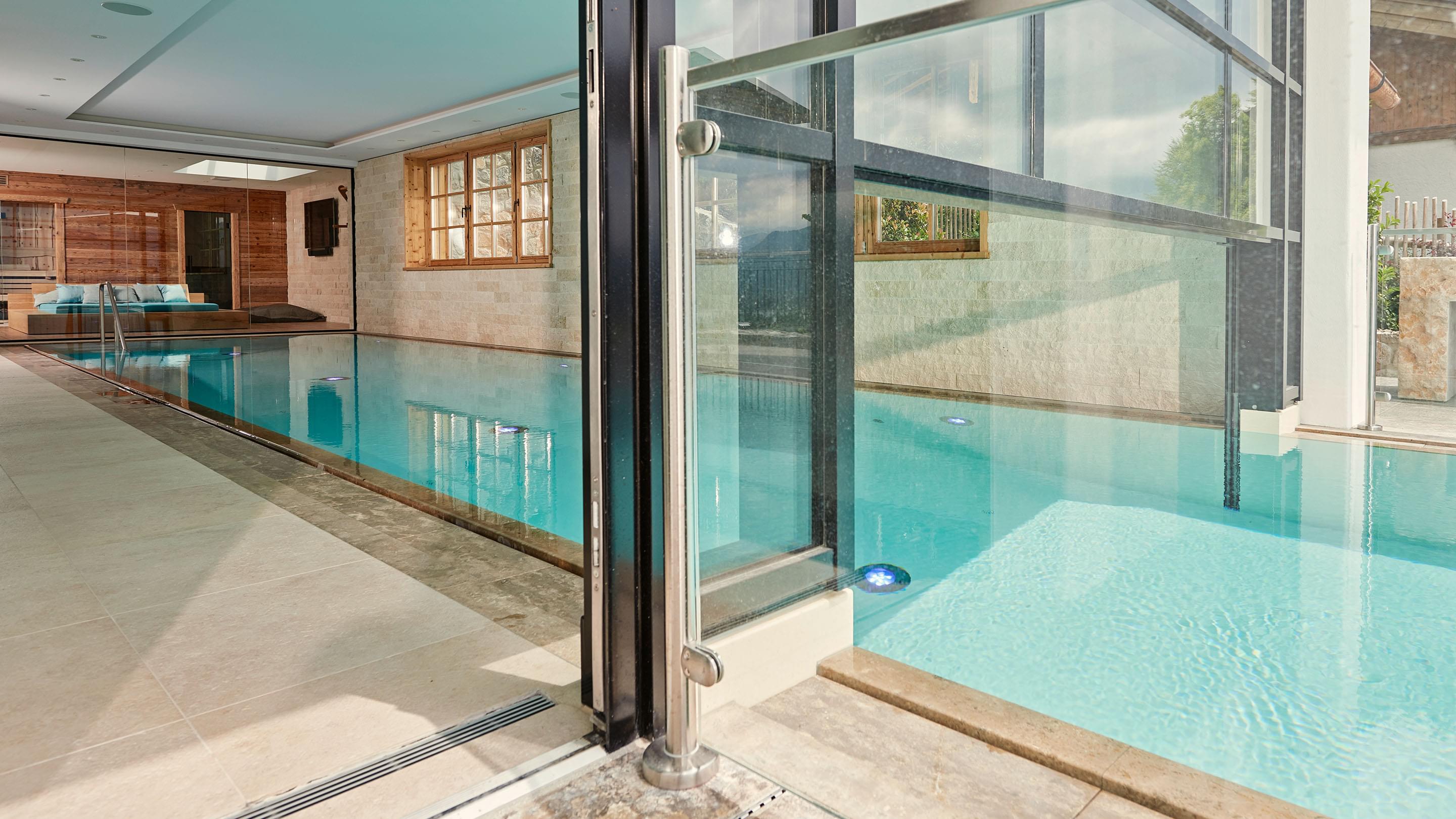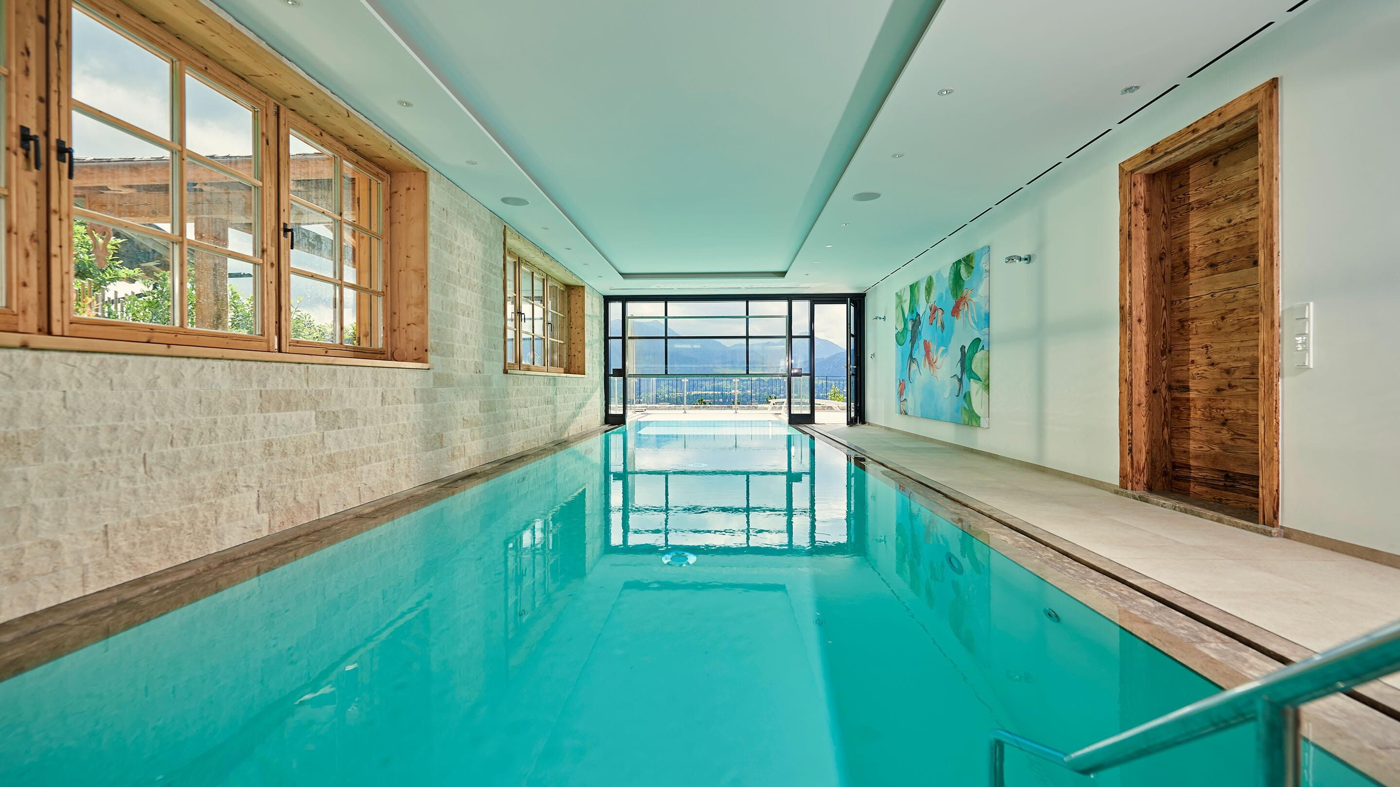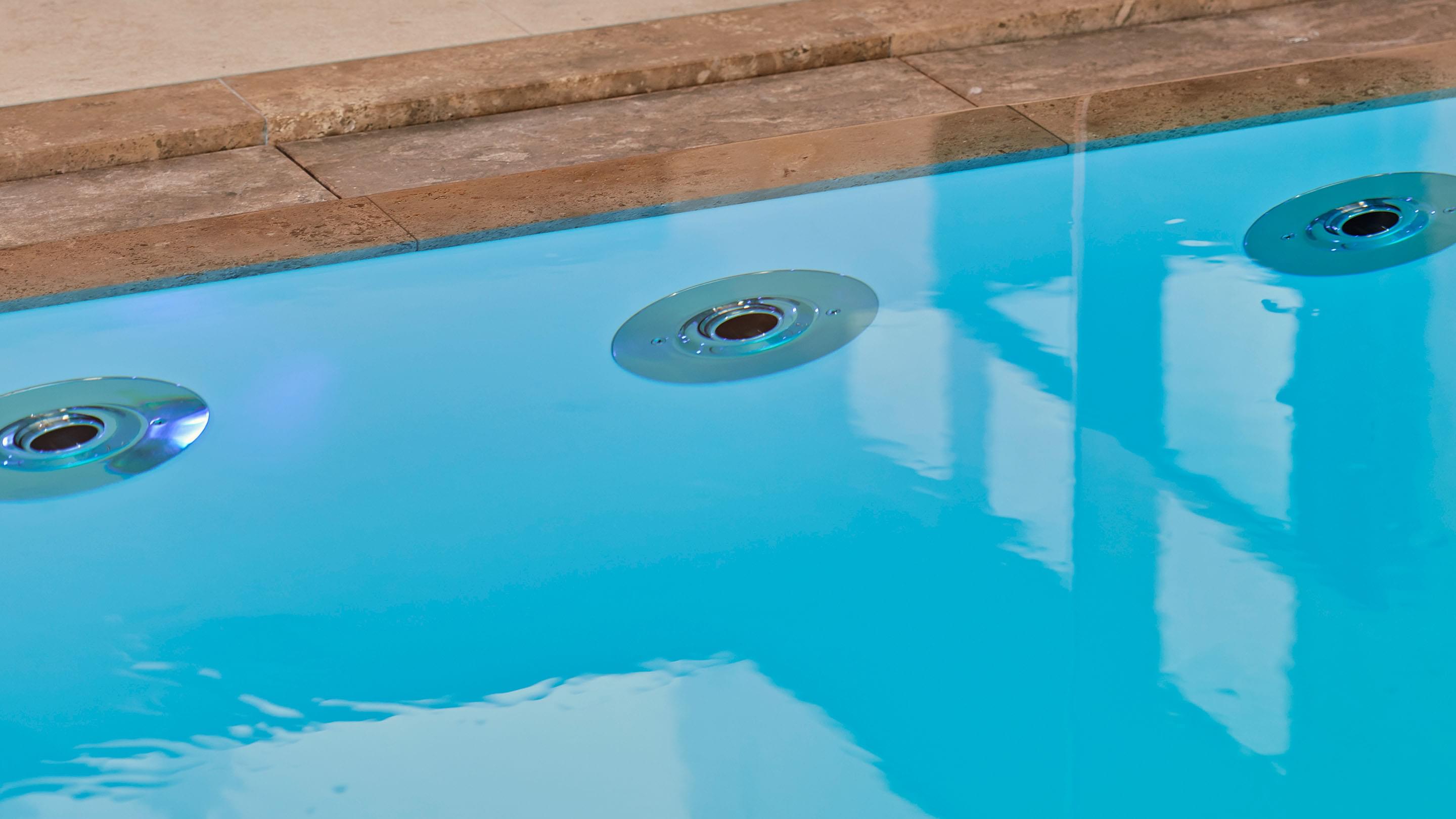 Unter den kundigen Händen des Ospa-Fachberaters Bernhard Alt entstand ein ästhetisch schönes wie auch hochfunktionales Schwimmbecken, in dem die Schwimmbadtechnik von Ospa für sauberes Wasser sorgt. Die Wasseraufbereitungsanlage setzt sich aus drei Elementen zusammen und sorgt durch die Kombination aus Ospa-Mehrschicht-Filter EcoClean und Ospa-BlueClear® mit der Ospa-BlueControl® Steuerung für jederzeit weiches und hautfreundliches Wohlfühlwasser in bester Qualität. BlueControl® ermöglicht die Kontrolle der Wasserqualität und bei Bedarf die gezielte Korrektur einzelner Werte. Für den Wellnesseffekt sorgt die Massagestation, stilvoll beleuchtet wird das Becken mit vier in den Boden eingelassenen LED-Unterwasserscheinwerfern.