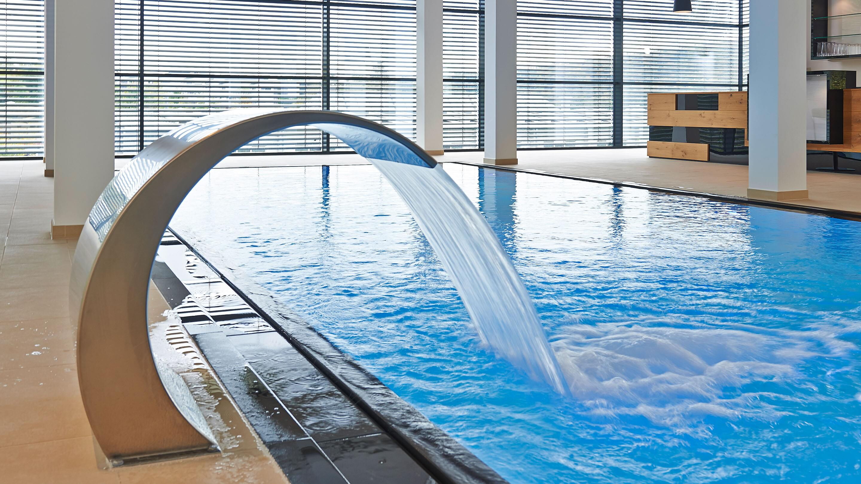 Die Steuerung der gesamten Technik von der Filtration über die Beleuchtung bis zu Klima, Whirlpool und Wasserattraktionen erfolgt bequem über eine Ospa-BlueControl® III Web – bei Bedarf auch online über Smartphone und Tablet.