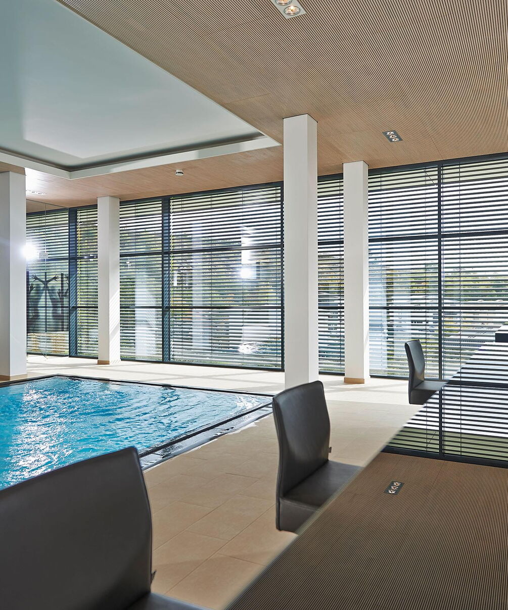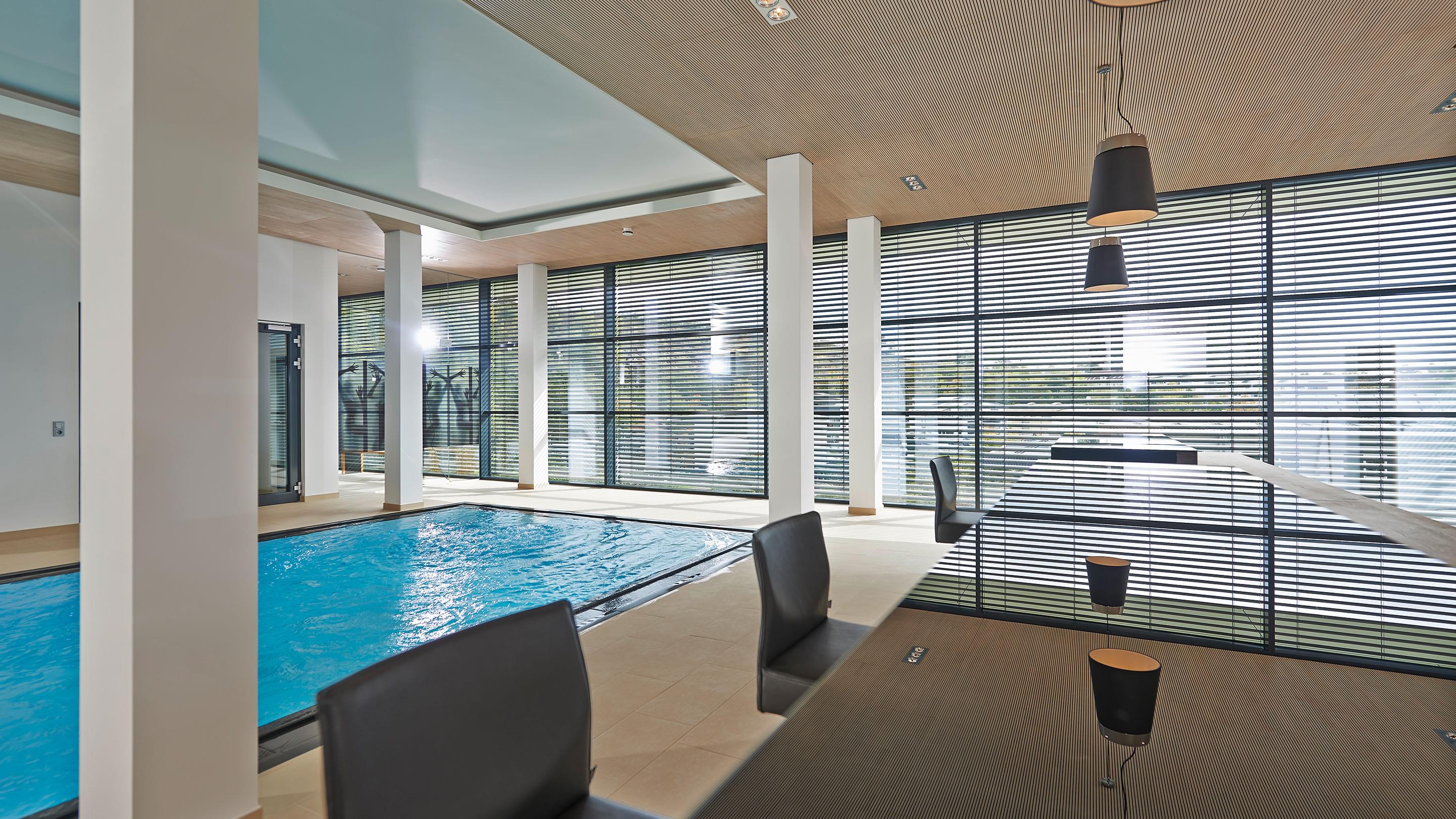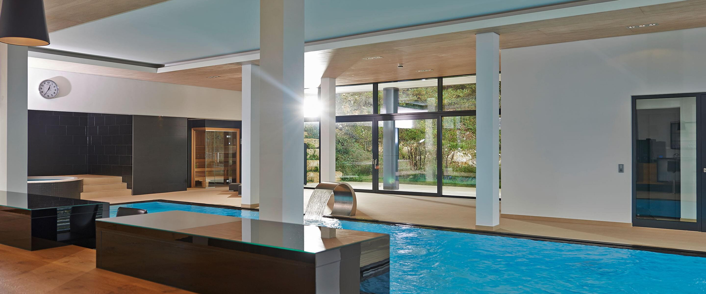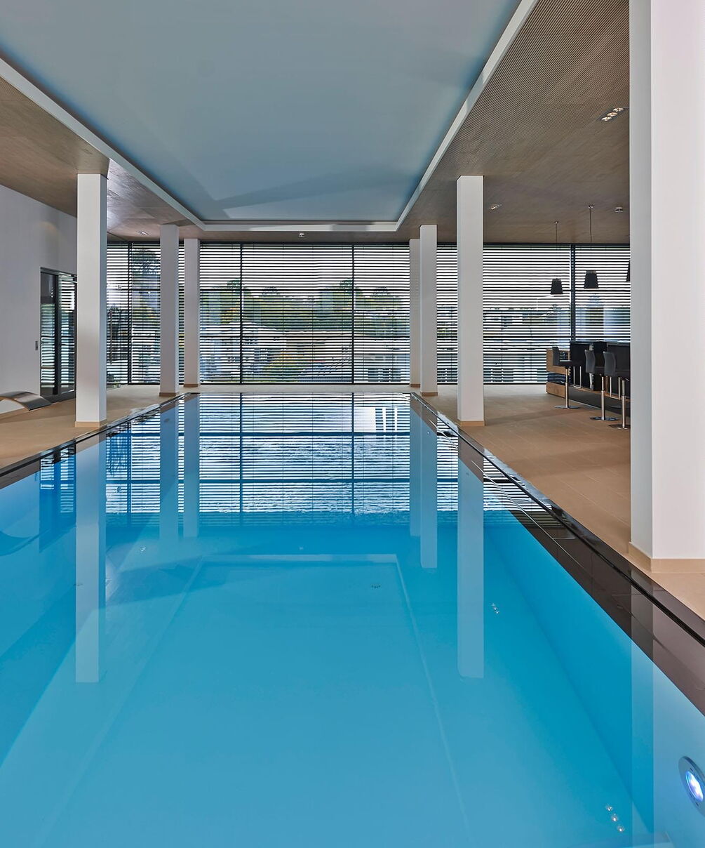 Weil das Schwimmbad als Wellness- und Wohnraum genutzt wird, ist angenehme Raumluft ohne Chlorgeruch essenziell. Die Lösung: Ospa-Superfiltertechnik. Eine großflächige Aktivkohle-Filterschicht hält nicht nur filtrierbare, sondern auch gelöste organische Verunreinigungen sowie Geruchs- und Geschmacksstoffe durch Adsorption zurück. Für die Desinfektion des Badewassers ist eine vollautomatische Ospa-BlueClear® Desinfektionsanlage verantwortlich. Das Ergebnis: sauerstoffreiches und hygienisches Badewasser.
