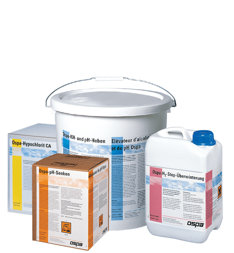Wasserpflegemittel von Ospa sorgen stets für angenehm frisches und hygienisch einwandfreies Badewasser. Vermeiden Sie Augenrötungen und Hautreizungen. Ospa-Pflegemittel stehen für beste Qualität und höchste Wirksamkeit. Ihre Regel- und Dosieranlagen sind auf die Wirkstoff-Konzentration der Ospa-Wasserpflegemittel abgestimmt und eingestellt. Wir empfehlen deshalb, grundsätzlich nur original Ospa-Wasserpflegemittel zu verwenden.