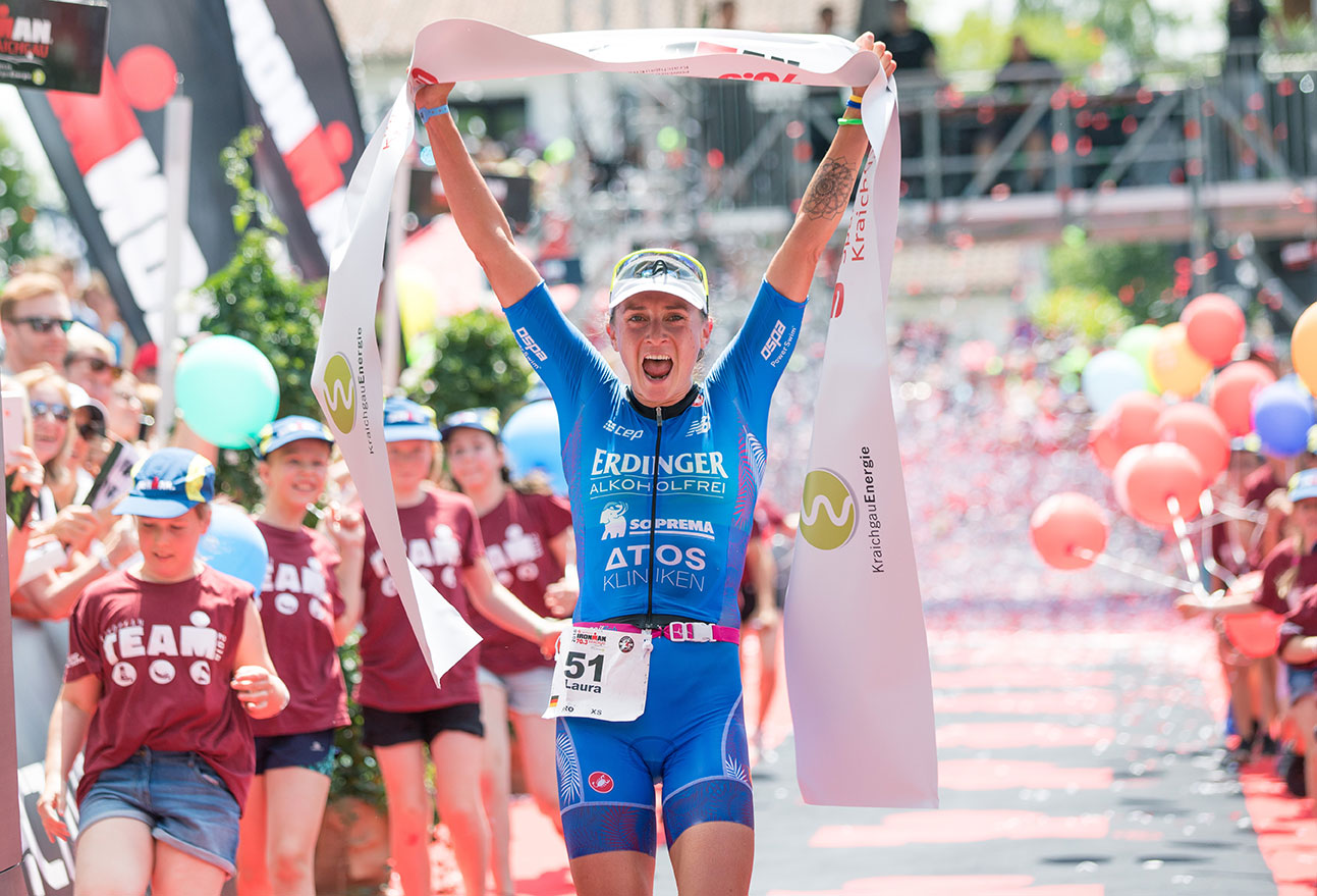 Die Serie hält auch im dritten Rennen. Im Schwimmen wird Laura Schritt für Schritt besser und verschafft sich somit immer erfolgsversprechendere Ausgangspositionen bereits zum Ende der ersten Disziplin. Das Schwimmtraining mit Gegenstromanlage zahlt sich aus. Auf dem Rad zeigte Laura wieder einmal, dass sie in dieser Disziplin eine Klasse für sich ist, so dass das Laufen zur scheinbaren Formsache wird. Nicht mit Vollgas, aber mit dem nötigen Respekt vor der Länge des Rennens, absolvierte Laura den Halbmarathon in Tagesbestzeit.