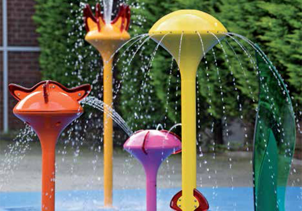 Zur Verfügung stehen gegenwärtig mehr als 60 verschiedene Wasserattraktionen und Gestaltungselemente, die alle miteinander kombiniert werden können. Die Anlagen können vorkonfiguriert und anschlussfertig für vier, sechs oder acht Wasserattraktionen bestellt werden.